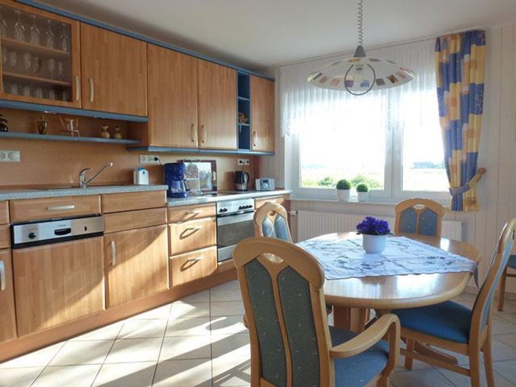 Im 110 qm großem Ferienhaus befindet sich im Erdgeschoss eine Küche mit großem Esstisch in der sich ein Backofen, Herd, Kühlschrank, Gefriertruhe, Spülmaschine, Mikorwelle, Wasserkocher und Toaster, einem Wohnzimmer mit TV (Satellit), einem Badezimmer mit Badewanne und WC. Zudem gibt es einen Zugang zum Gemeinschaftsgarten. Im Obergeschoss befinden sich drei Schlafräume (einmal ein Doppelzimmer und zwei Einzelzimmer), sowie ein Gitterbett für die kleinen Gäste, sowie ein Badezimmer mit Dusche/WC. Bettwäsche, Handtücher, Geschirrtücher, Internetanschluss und Waschmaschine sind inklusive. Kinderhochstuhl auf Wunsch vorhanden.