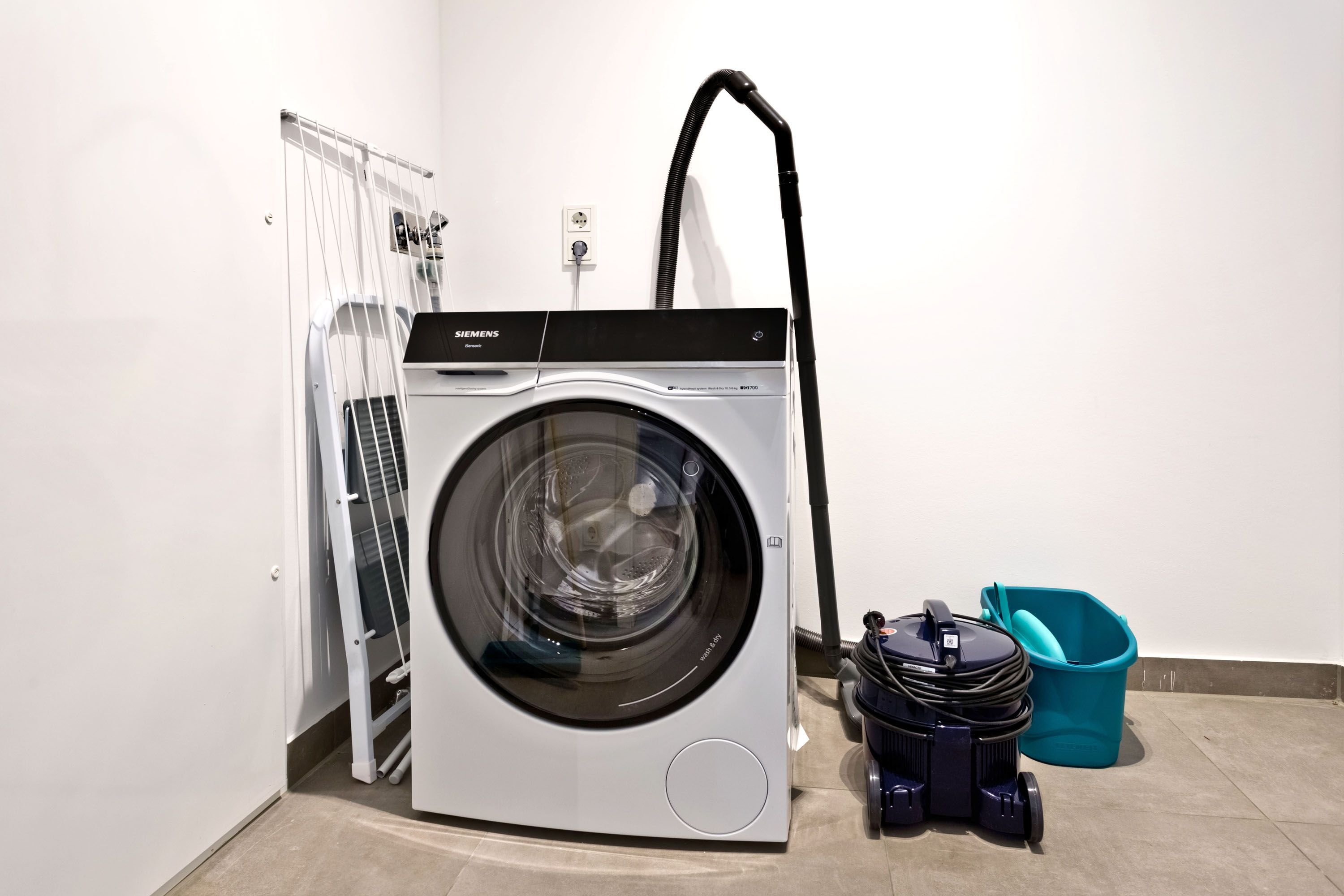 Hauswirtschaftsraum in der Wohnung mit eigener Waschmaschine, Bügeleisen/Bügelbrett.