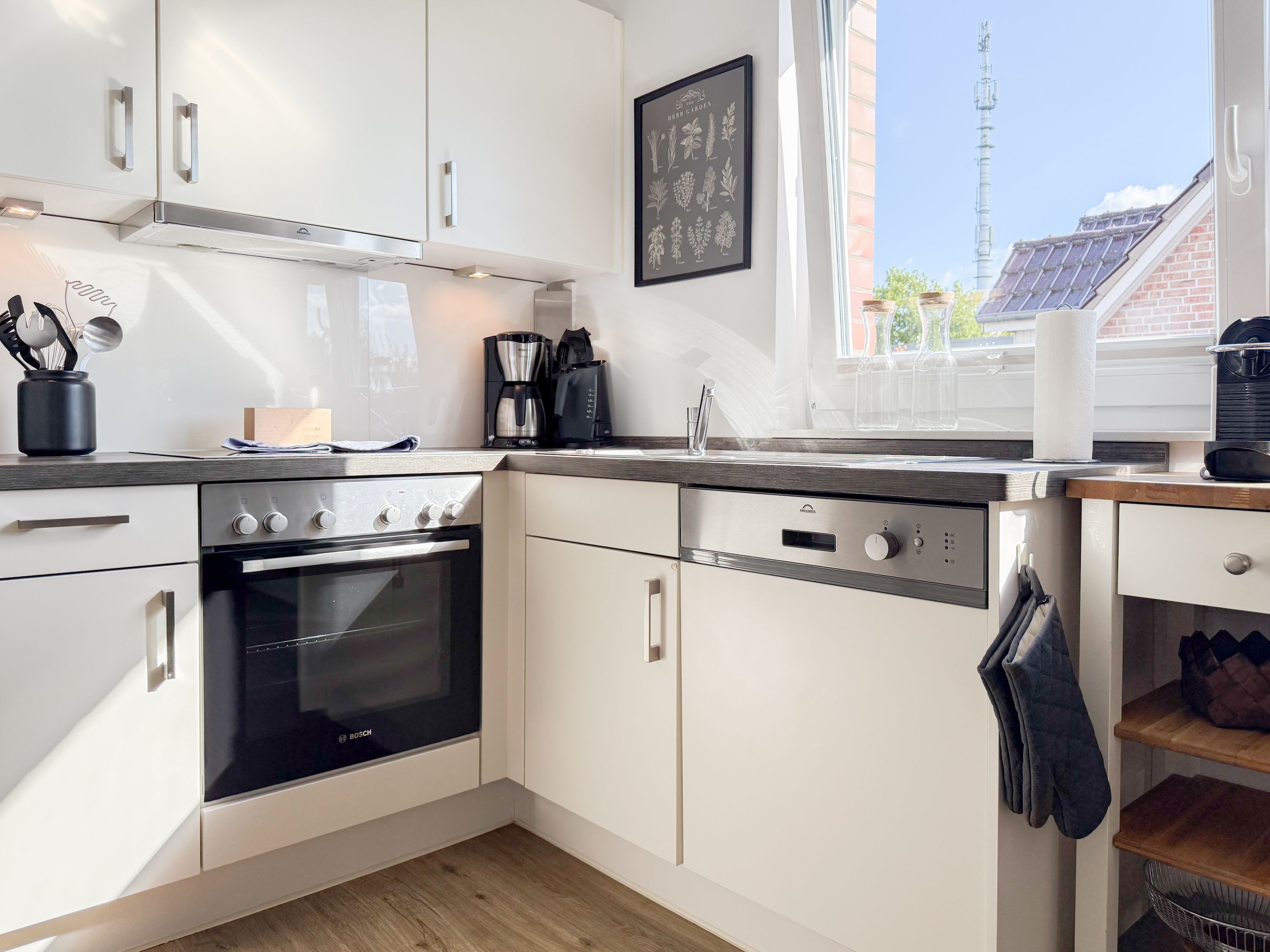 Die Ferienwohnung Magic Eight liegt im ersten Obergeschoss des Hauses 2Seasons und bietet dank toller Lage einen idealen Rückzugsort, ohne auf den besonderen Timmendorfer Lifestyle zu verzichten und abwechslungsreiche Urlaubstage in Strandnähe zu verleben. Die hochwertig ausgestattete Wohnung erstreckt sich über zwei Ebenen und verfügt über einen herrlichen Südwestbalkon mit Blick ins Grüne. Auf der unteren Wohnebene befinden sich ein gemütlicher Wohnbereich mit TV und Balkonzugang, der anschließende Essbereich für vier Personen sowie eine offene, moderne Einbauküche, bestens ausgestattet für gemeinsames Kochen. Das großzügig angelegte und modern gestaltete Bad, ebenfalls auf der unteren Ebene, verfügt über eine XXL Walk-In-Dusche und viel Tageslicht. Die beiden separaten Schlafzimmer der Ferienwohnung sind über eine Treppe aus dem Wohnbereich zu erreichen. Schlafzimmer 1 verfügt über ein Boxspringbett (180x200) TV und Verdunkelungsplissees, Schlafzimmer 2 über 2 Einzelbetten und Verdunkelungsrollos.