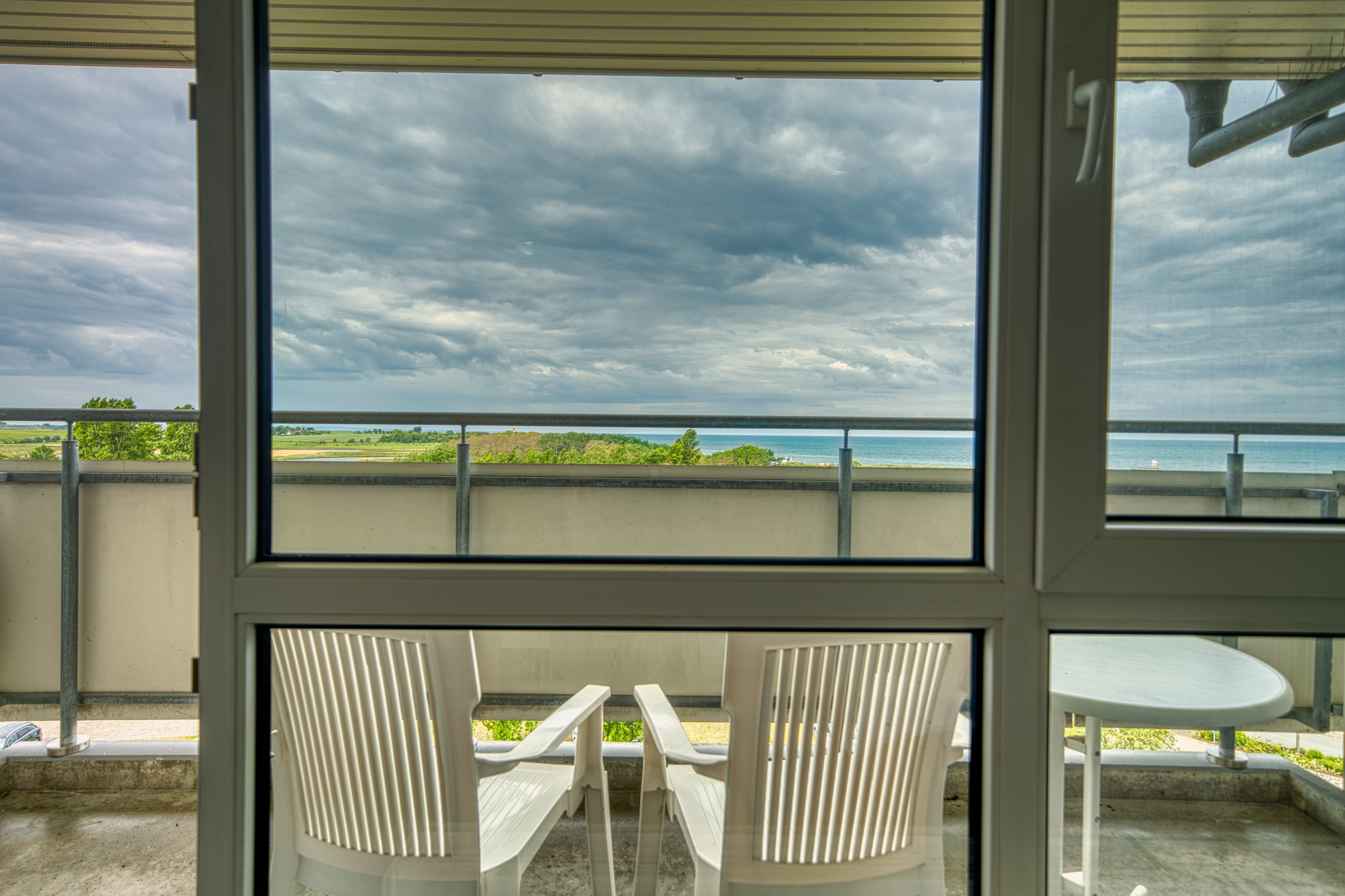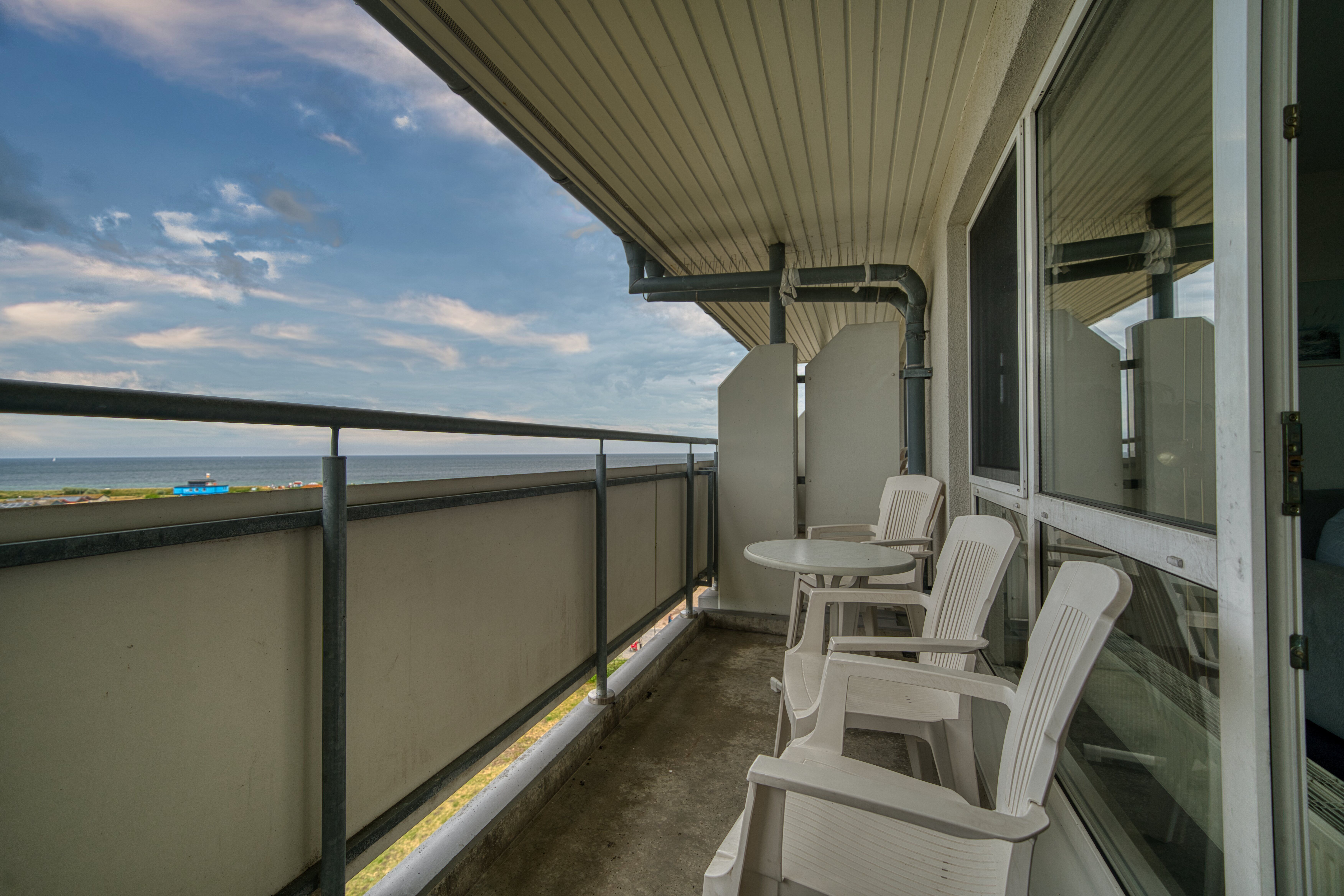 7. Etage mit Balkon und Blick auf die Drachenwiese und die Ostsee