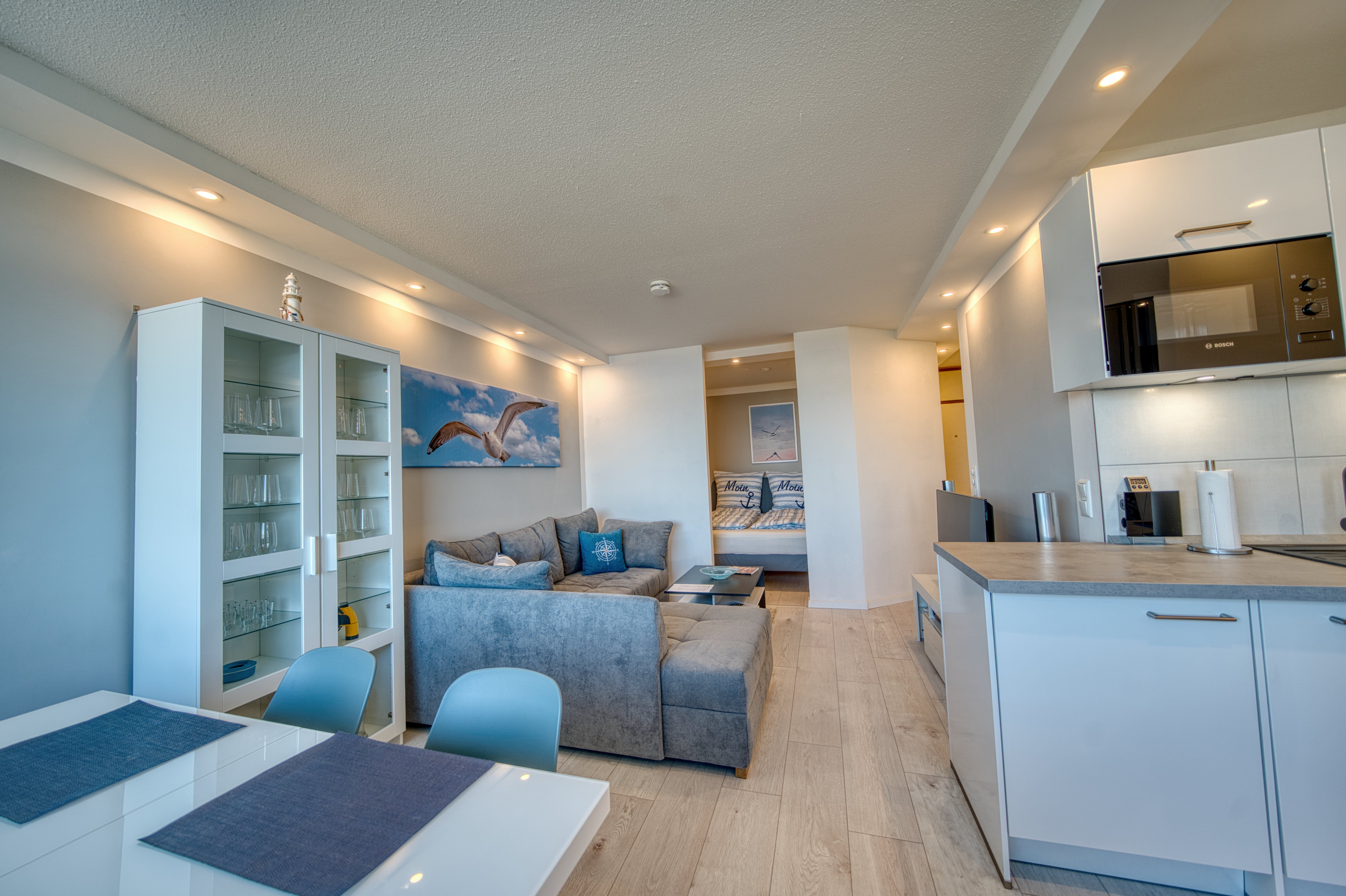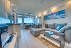 Diese gemütliche Wohnung kombiniert modernes Design und einen unvergleichen Ausblick auf das Meer
