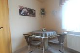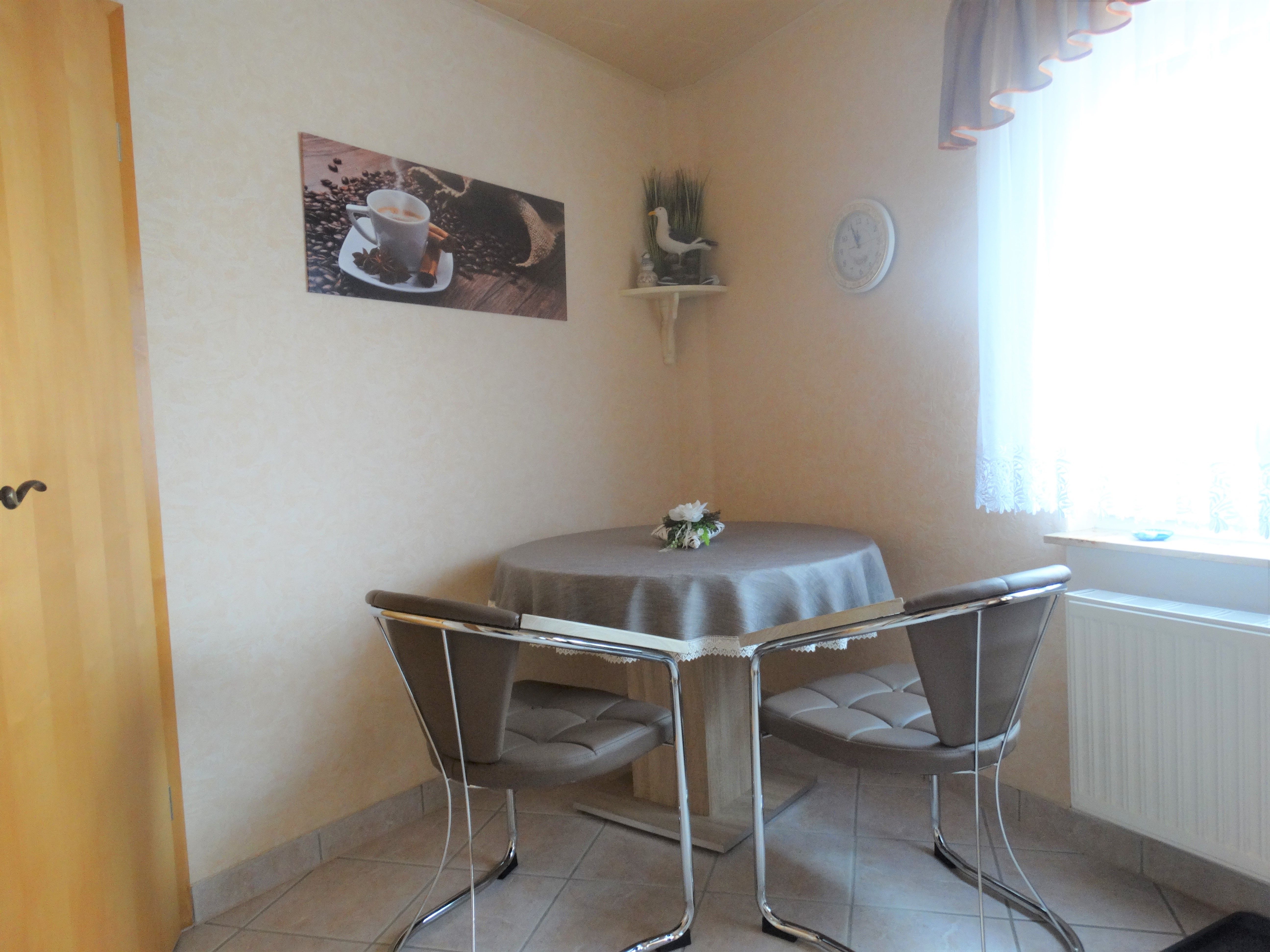 Die Küche ist ausgestattet mit Kaffeemaschine, Wasserkocher, Toaster, Geschirr, Besteck sowie Töpfe und Pfannen. Der Kühlschrank besitzt ein Gefrierfach.