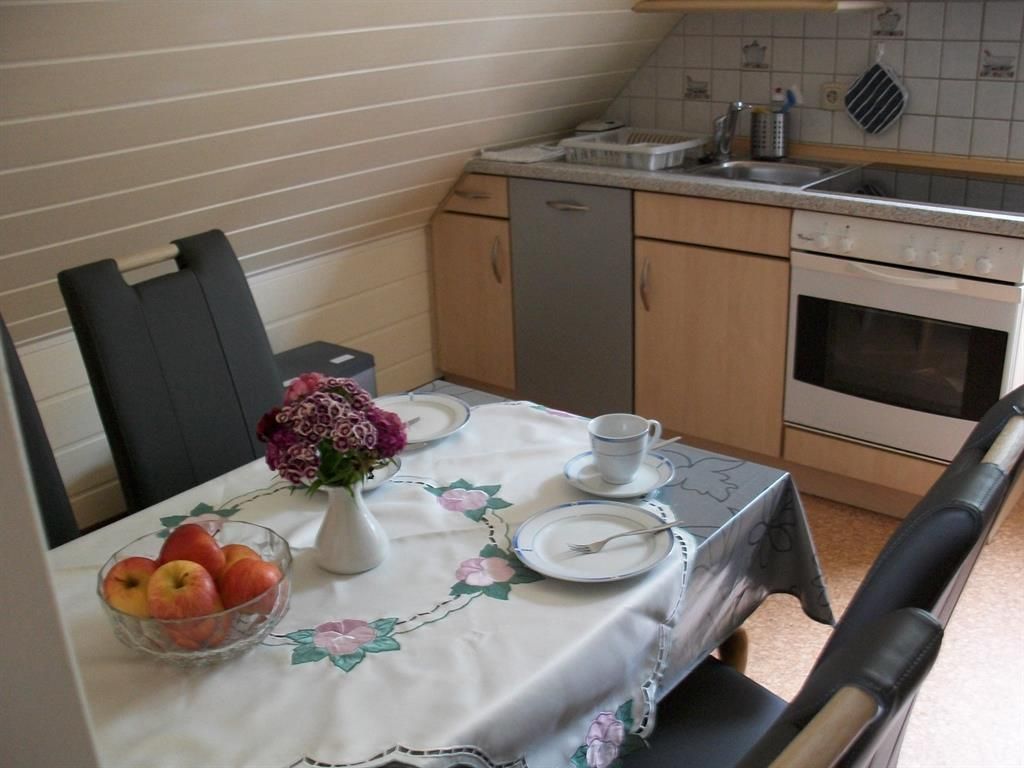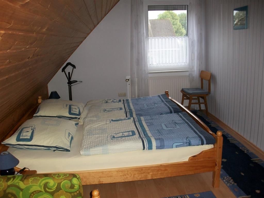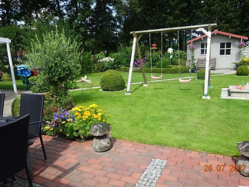 Die Ferienwohnung (60qm) befindet sich in ruhiger Lage am Kanal gelegen. Die Ferienwohnung verfügt über ein Wohnzimmer (OG) mit neuer Couchgarnitur, Flachbild-TV und eine Anbauwand mit Büchern. Eine separate Küche mit Einbauküche, Mikrowelle und Sitzecke, Kinderhochstuhl zustellbar (OG). Das Schlafzimmer im Obergeschoss verfügt über ein Doppelbett und ein Einzelbett. Ein Kinderbett kann noch dazugestellt werden. Das Schlafzimmer im Erdgeschoss hat zwei Einzelbetten. Das Bad mit Dusche und WC befindet sich im Obergeschoss. Bettwäsche und Handtücher werden gestellt. Für die Kleinen steht eine Spielkiste mit Spielsachen und Gesellschaftsspielen bereit. Die neue überdachte Terrasse mit gemütlichen Gartenmöbeln und Grill liegt direkt an der Ferienwohnung. Ein Parkplatz und eine Fahrradgarage sind vorhanden. Waschmaschine u.Trockner kann bei der Vermieterin nach Absprache gegen eine Gebührvon 2 Euro pro Gang genutzt werden. Fahrräder, Tischtennisplatte und unser Ruderboot stehen unseren Gäste kostenlos zur Verfügung.
