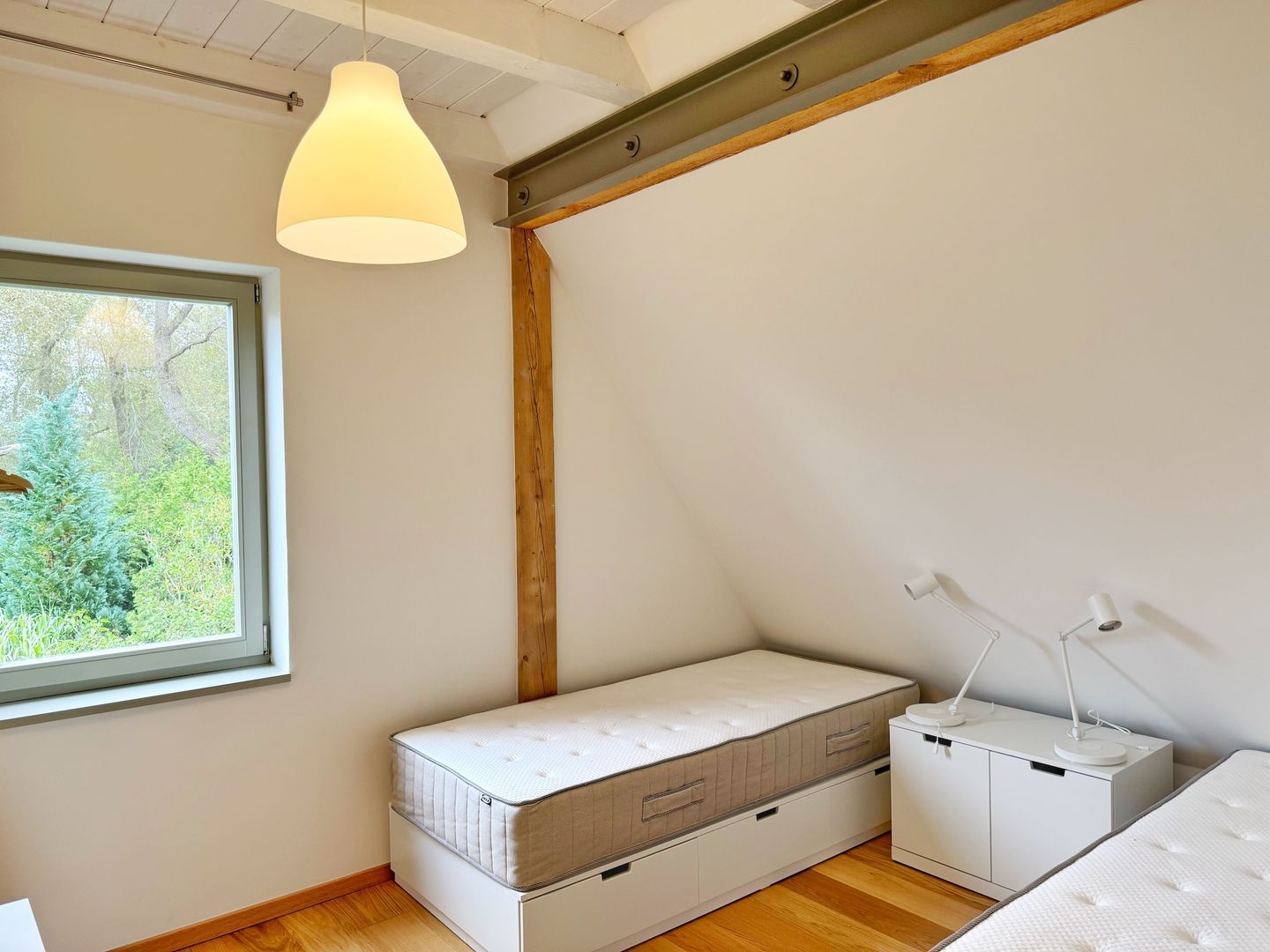 Es gibt zwei separate Schlafzimmer, eins davon mit Doppelbett, das zweite Schlafzimmer bietet zwei Einzelbetten.