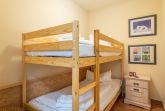 Es gibt ein Schlafzimmer mit Doppelbett und ein zweites Schlafzimmer mit einem Etagenbett.