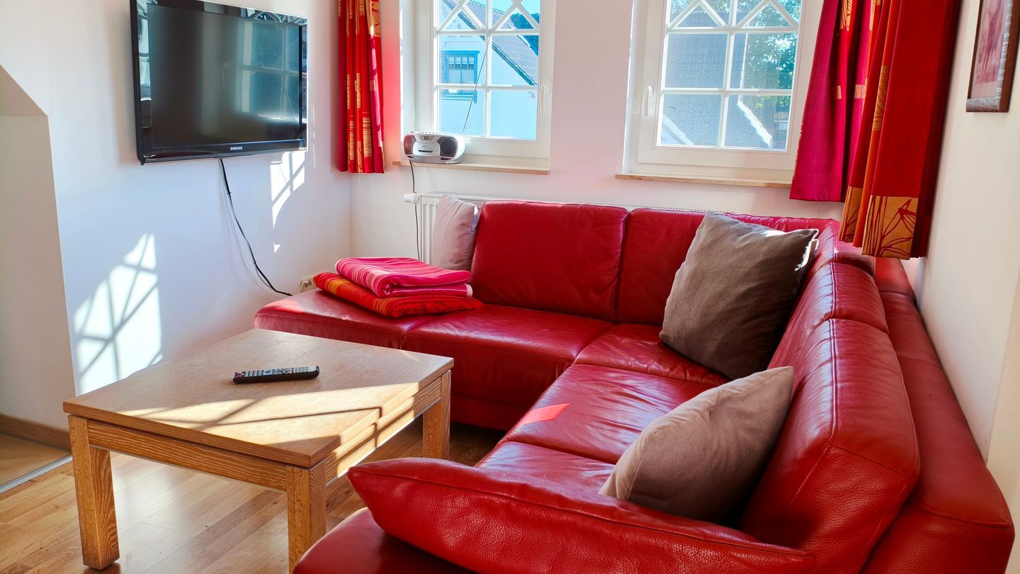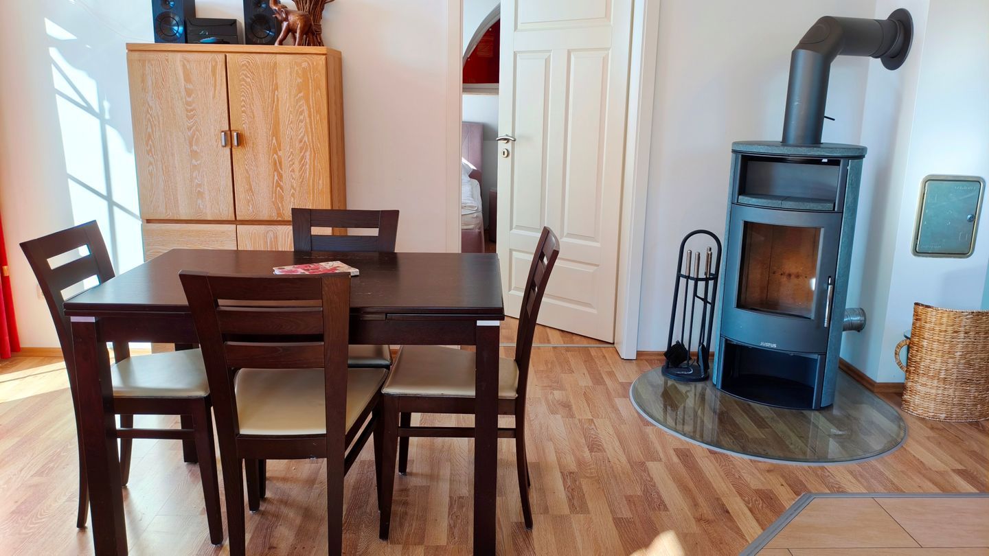 Die Wohnung ist allergikerfreundlich und als Nichtraucher-Unterkunft ausgewiesen. Sie verfügt über zwei separate Schlafzimmer mit Laminatfußboden, die Ihnen komfortable Schlafmöglichkeiten für bis zu drei Personen bieten. Das helle, freundliche Wohnzimmer ist mit einem Kaminofen für behagliche Abende ausgestattet. Eine stilvolle Sofalandschaft, zwei digitale Fernseher, ein CD-Player sowie ein Radio stehen zur Unterhaltung bereit.