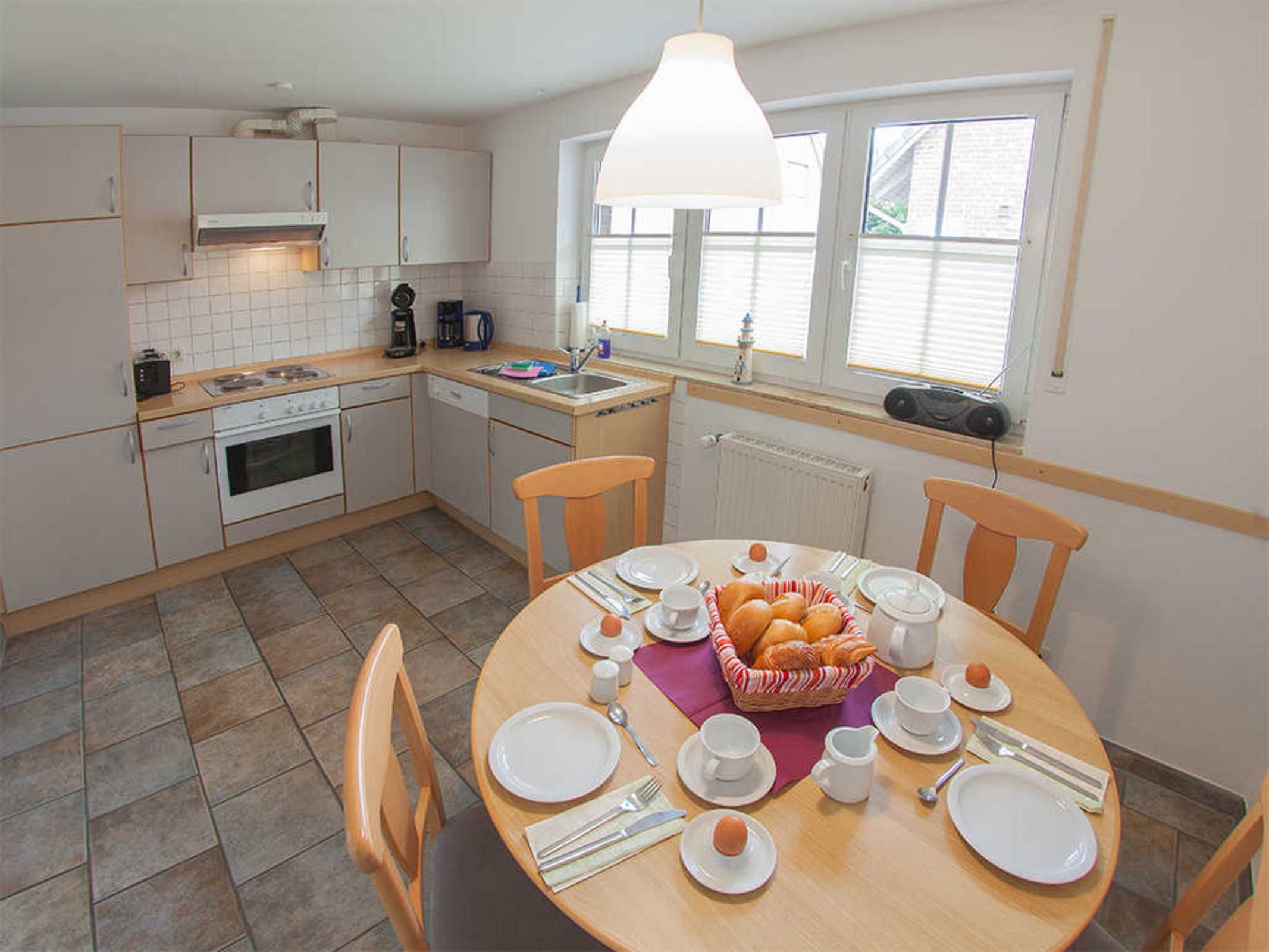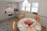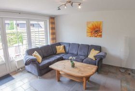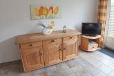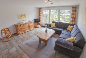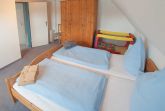 Im Obergeschoss gibt es ein helles Fenster-Duschbad mit Waschmaschine und die beiden Schlafräume: je ein Schlafzimmer mit Doppelbett und ein Schlafraum mit zwei Einzelbetten. Ein Treppenschutzgitter ist vorhanden.