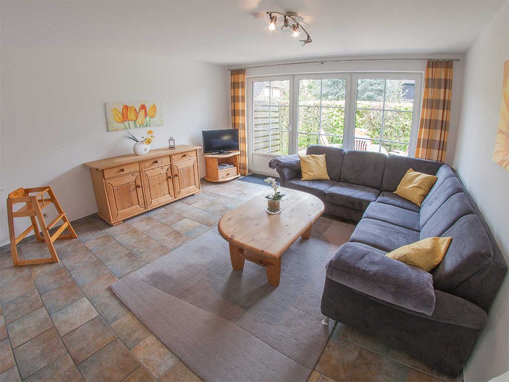 Im Eingangsbereich finden Sie den Flur mit Garderobe und Gäste-WC. Weiter geht's zum separaten kombinierten Küchen-Essbereich mit Kinderhochstuhl und dem gemütlichen Wohnzimmer mit Ausgang zur eingegrünten Terrasse. Hier genießen Sie die Sonne sichtgeschützt auf der Südseite.