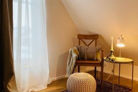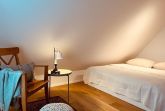 Das Haus bietet Platz für bis zu sechs Personen mit drei Schlafzimmern im Obergeschoss. Jedes der drei Doppelzimmer verfügt über ein Doppelbett (2x 1,60m x 2,00m; 1x 1,80m x 2,00m).