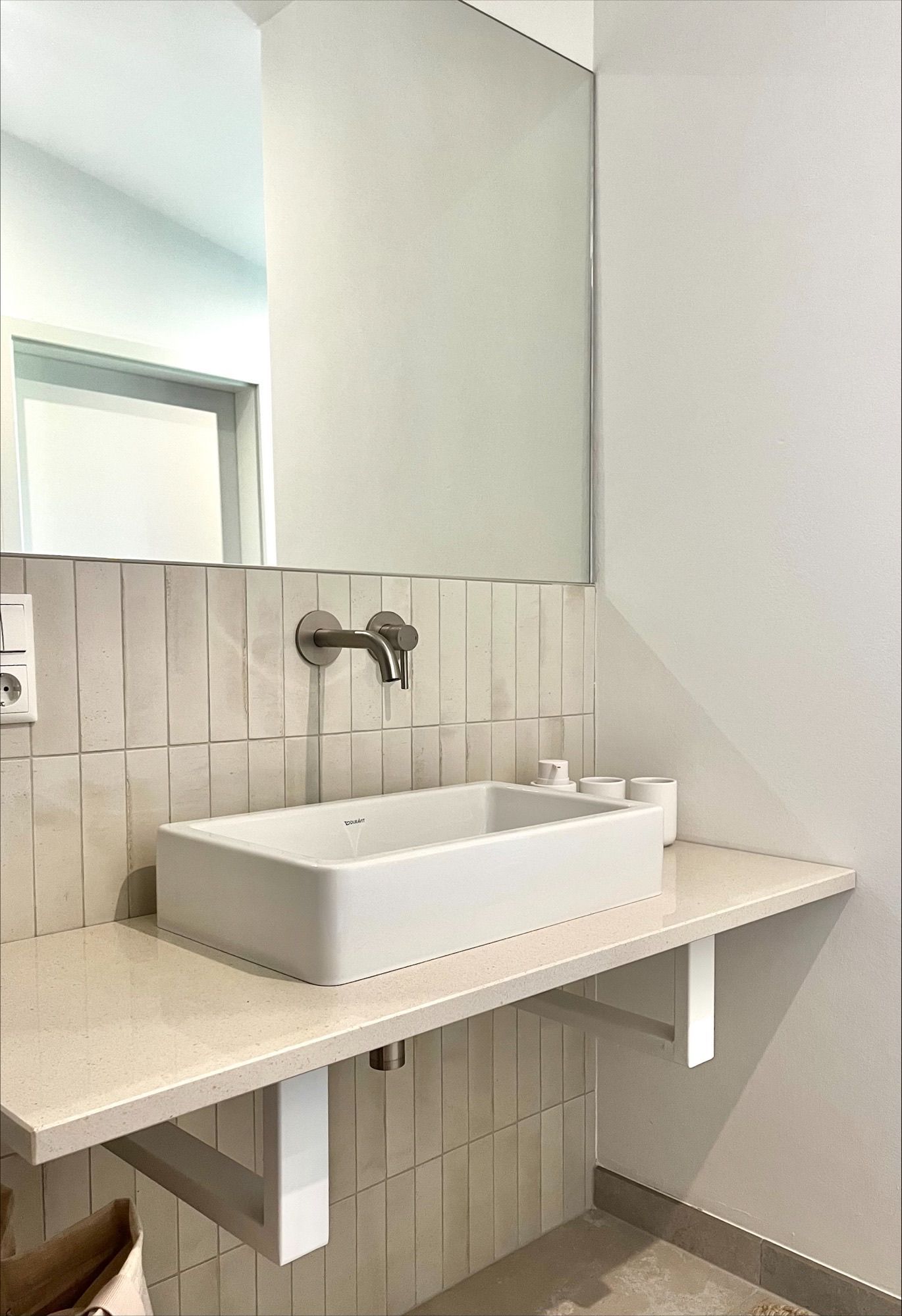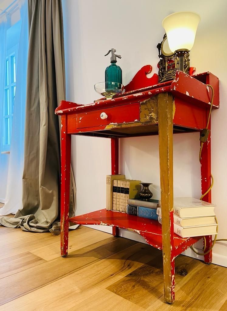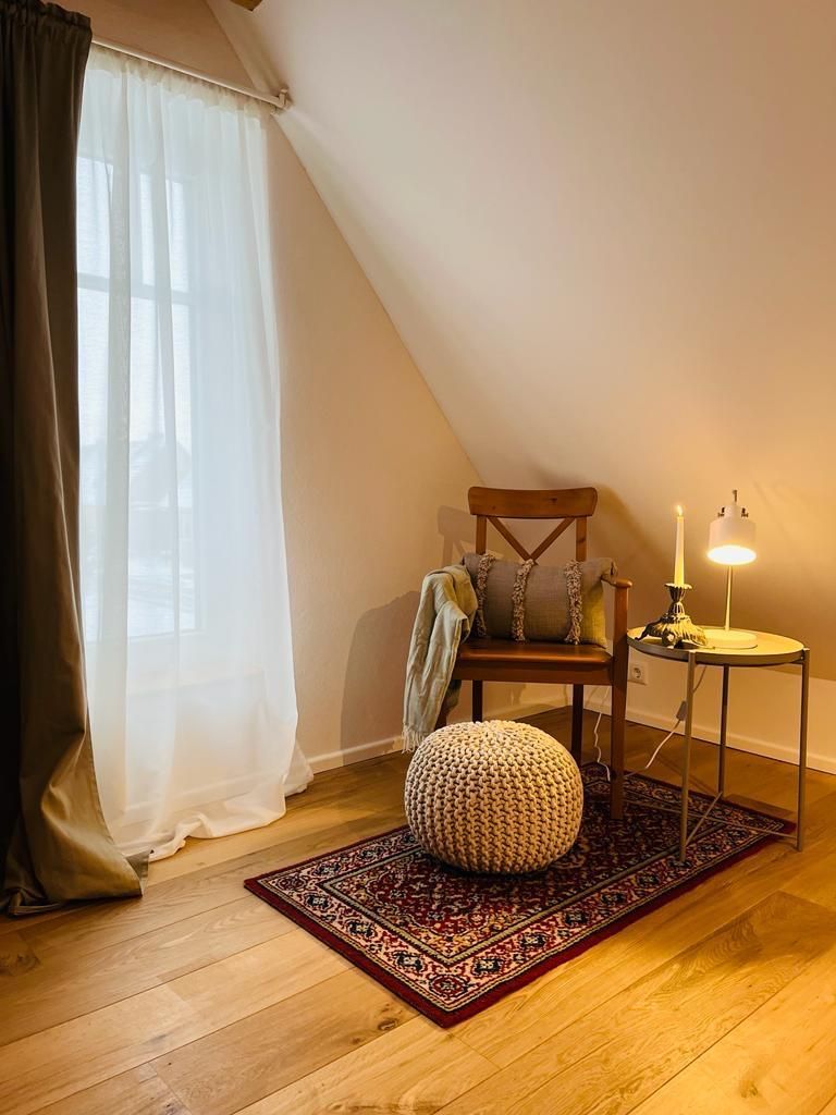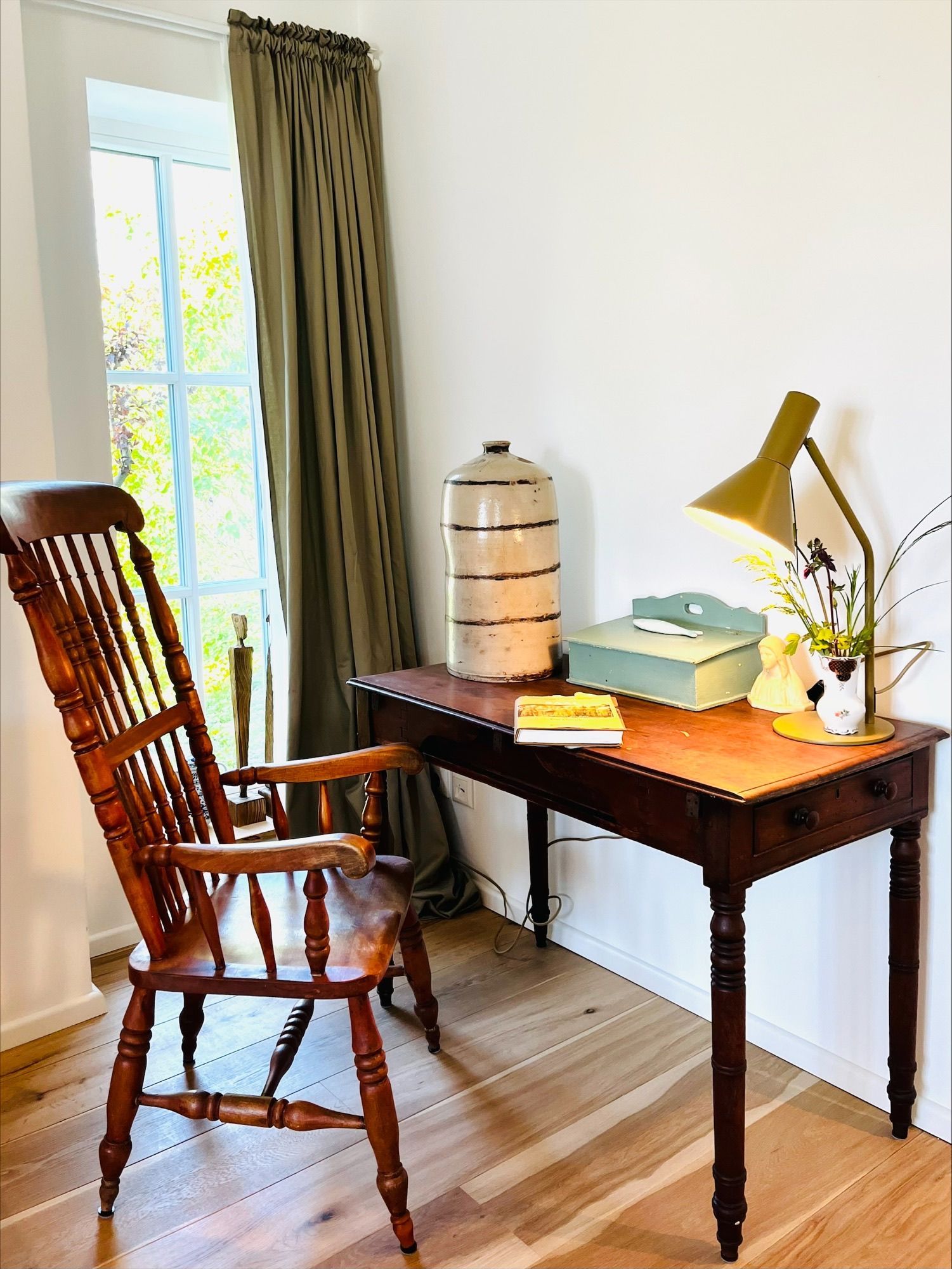 Uns ist es ein Bedürfnis dieses familiäre Kleinod und Stückchen Heimat zu erhalten und in der Familie zu belassen. Wir haben das Haus von 1952 komplett auf den Kopf gestellt, neu strukturiert und modernisiert. Auch wenn die räumliche Aufteilung nun eine andere ist als früher und nahezu nur noch die Außen- und tragenden Wände das ehemalige Gerüst darstellen, haben wir versucht den Charme der Vergangenheit zu erhalten. So haben wir teilweise Decken und Wände belassen, den ehemaligen Klassenzimmerboden als Wandvertäfelung verbaut und alte Holzdielen als Fensterbänke und Ablageflächen zweckentfremdet.