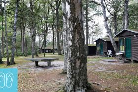 Klein aber fein, mit Liebe zum Detail sind die kleinen urigen Blockhütten ausgestattet. Sie haben einen Wasseranschluss und bestehen aus einem Schlafraum und einer Wohnküche mit Sitzecke. Das zweckmäßige Sanitärgebäude mit Duschen und WC ist nur wenige Meter entfernt. Geeignet für Minimalisten, Individualisten, Sinnsucher und Familien.