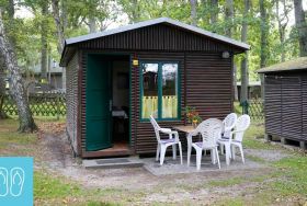 Klein aber fein, mit Liebe zum Detail sind die kleinen urigen Blockhütten ausgestattet. Sie haben einen Wasseranschluss und bestehen aus einem Schlafraum und einer Wohnküche mit Sitzecke. Das zweckmäßige Sanitärgebäude mit Duschen und WC ist nur wenige Meter entfernt. Geeignet für Minimalisten, Individualisten, Sinnsucher und Familien.