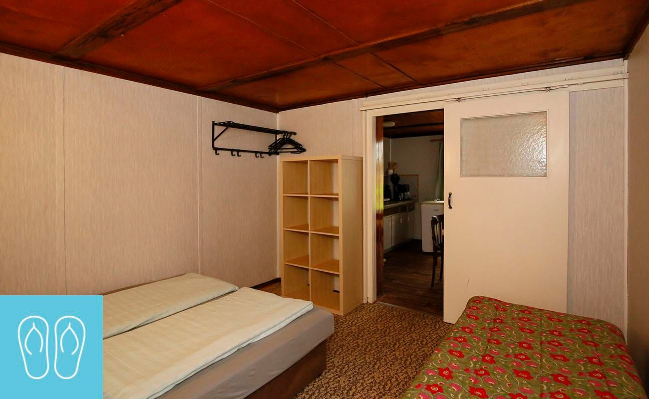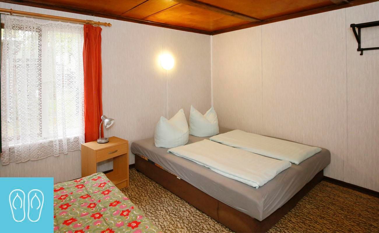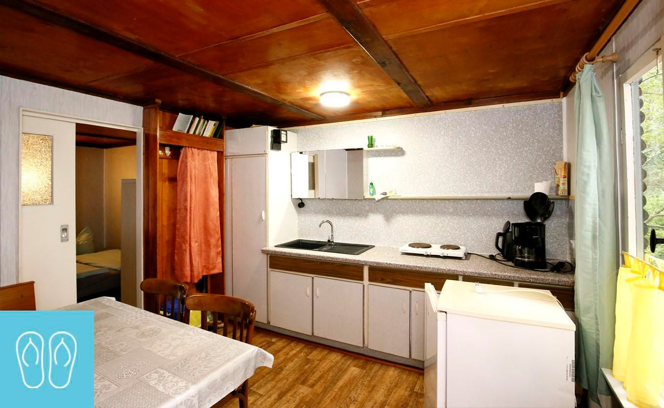 Klein aber fein, mit Liebe zum Detail sind die kleinen urigen Blockhütten ausgestattet. Sie haben einen Wasseranschluss und bestehen aus einem Schlafraum und einer Wohnküche mit Sitzecke. Das zweckmäßige Sanitärgebäude mit Duschen und WC ist nur wenige Meter entfernt. Geeignet für Minimalisten, Individualisten, Sinnsucher und Familien.
