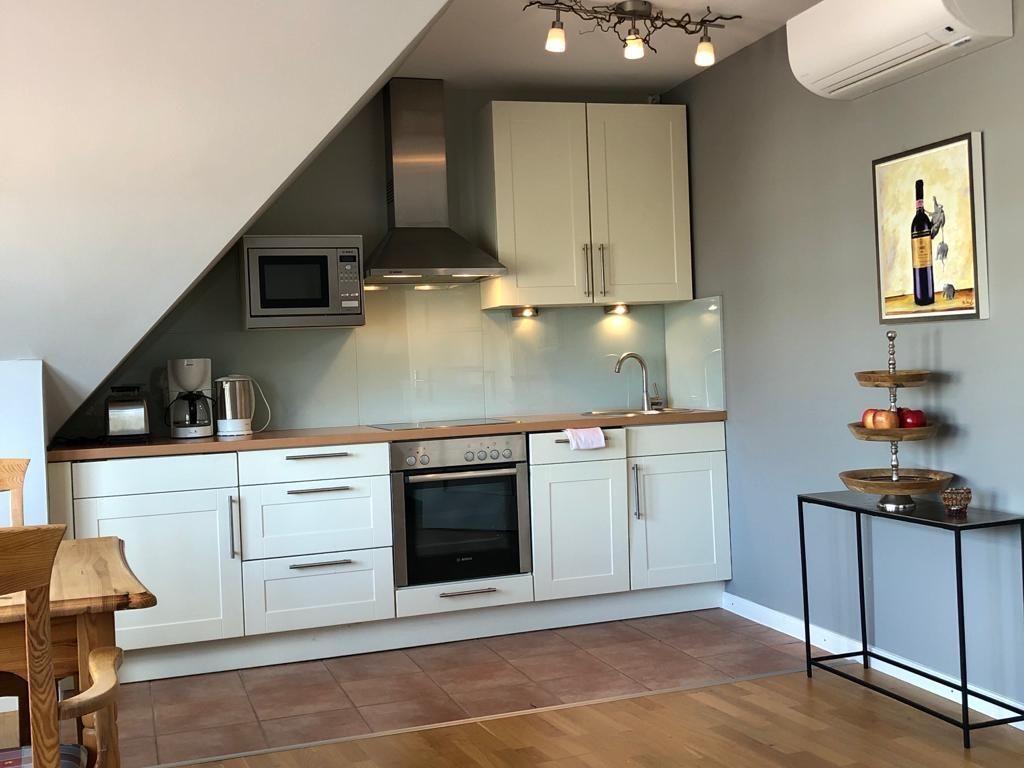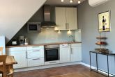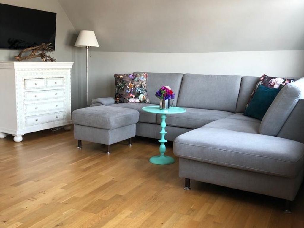 Die 35 qm große Ferienwohnung befindet sich in der 3. Etage und verfügt über ein Schlafzimmer mit Doppelbett, sowie ein Wohn-Schlafraum. Die Wohnung hat eine Wohnküche und ein Badezimmer mit Dusche/WC. Im Wohnzimmer befindet sich ein Fernseher und ein DVD-Player.