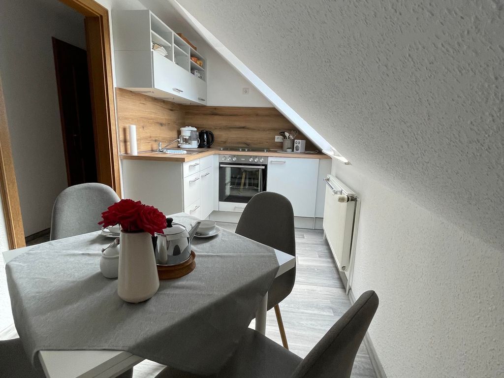 Die liebevoll eingerichtete Ferienwohnung (ca. 85 qm) befindet sich im Obergeschoss des Wohnhauses und bietet Platz für bis zu 4 Personen. Sie verfügt über zwei separate Schlafzimmer (ein Schlafzimmer mit Doppelbett 2,00 m x 2,00 m und ein Schlafzimmer mit einem französischem Bett 1,40 m x 2,00 m), einer Küche mit Cerankochfeld und Backofen, Kühlschrank mit Gefrierfach, Toaster, Wasserkocher und Kaffeemaschine. Alle Zimmer verfügen über Tageslicht und sind mit elektrischen Außenjalousien ausgestattet. Kinderreisebett sowie ein Hochstuhl werden bei Bedarf kostenlos zur Verfügung gestellt. Zur Ferienwohnung gehört auch eine eigene Terrasse welche mit Gartenmöbeln, Sonnenschirm und einem Grill ausgestattet ist. Eine Wachmaschine befindet sich ebenfalls in der Wohnung und kann gegen Gebühr genutzt werden. Handtücher und Bettwäsche werden einmalig gestellt (weitere Wechsel sind selbstverständlich gegen Gebühr möglich). Wir bitten im Interesse unserer allergischen Gäste um Verständnis, dass das Mitbringen von Haustieren nicht gestattet ist. Das Rauchen ist im Außenbereich möglich. Vermietung ausschließlich an Feriengäste, nicht an Firmen.