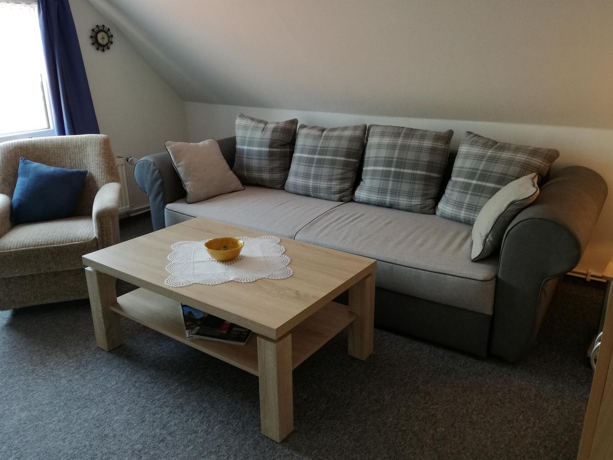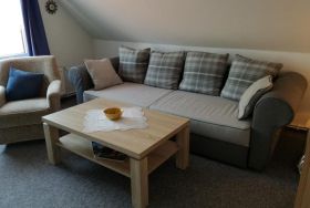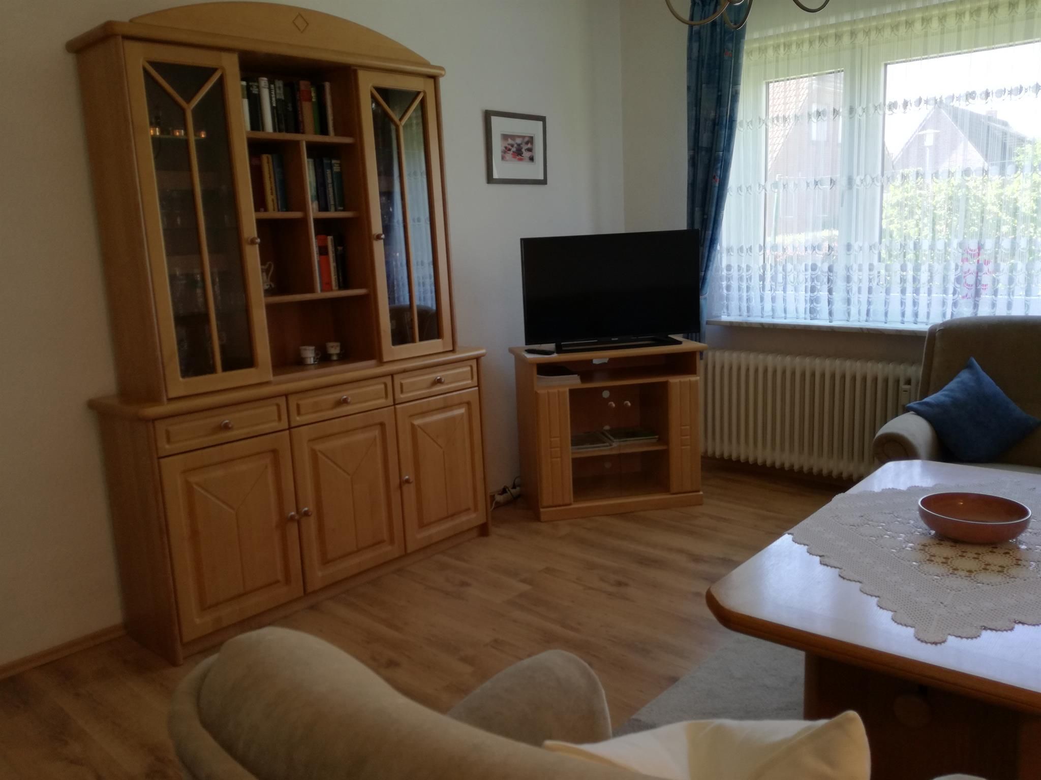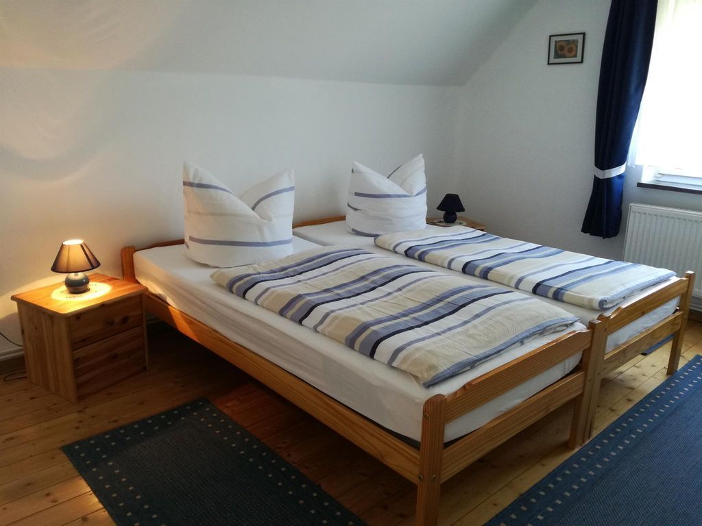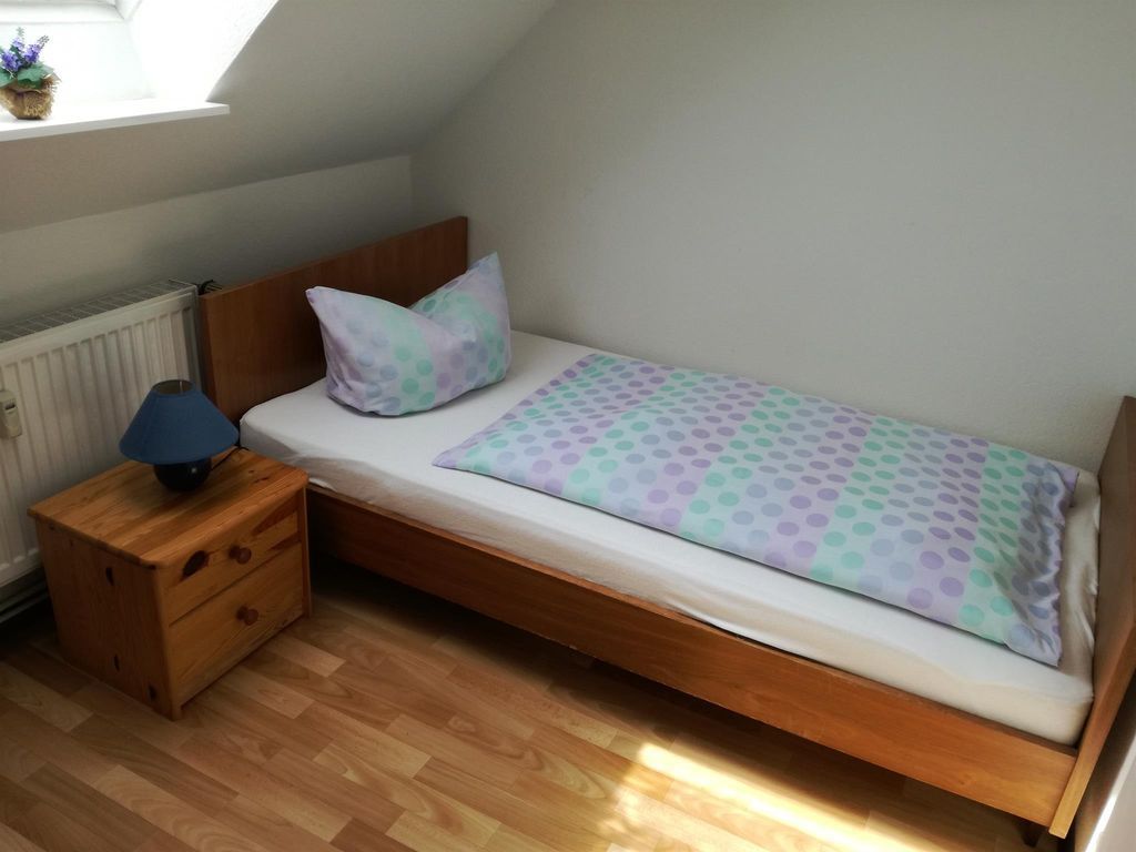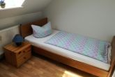Die ca. 50 qm große Ferienwohnung hat ein Wohnzimmer mit Couchgarnitur, Sat TV, Radio und Schrank. Eine separate Küche mit Backofen, Ceranfeld, Kühlschrank, Kaffemaschine usw. finden Sie ebenfalls. Die Schlafzimmer sind aufgeteilt in einem Doppelzimmer mit kompletter Einrichtung und ein Einzelzimmer bei dem auf Wunsch ein Zustellbett (für Kleinkinder) mit rein gestellt werden kann. Im Badezimmer befindet sich eine Dusche. Handtücher werden kostenlos gestellt. Großer Garten mit Grillmöglichkeit zur Verfügung.