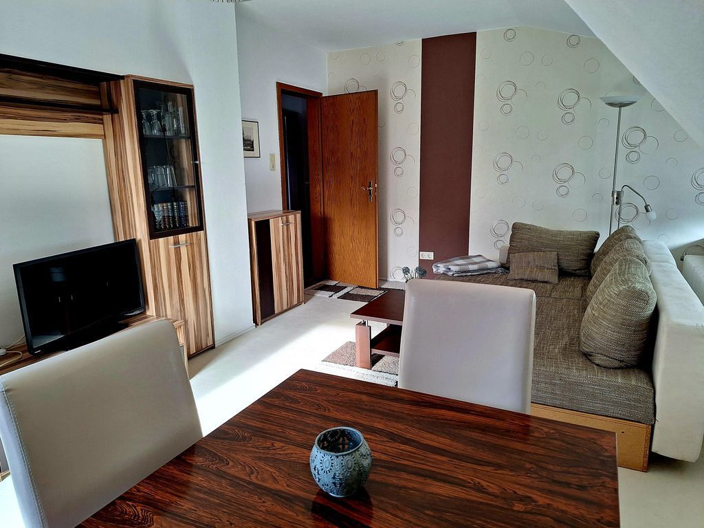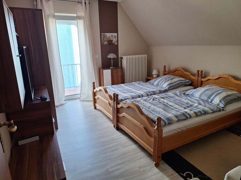 Die ca. 60 qm große Wohnung befindet sich in der 1. Etage. 2 Zimmer (Wohn- und Schlafzimmer), Küche, Bad mit Dusche, Balkon. in der Küche gibt es zusätzlich eine Kaffeemaschine, einen Wasserkocher, einen Toaster, eine Mikrowelle und Fernseher in Wohn-/Schlafzimmer. Falls noch eine 3. Person dabei ist, gibt es die Möglichkeit das Sofa in ein Schlafsofa umzuklappen. Bettwäsche und Handtücher sind vorhanden.