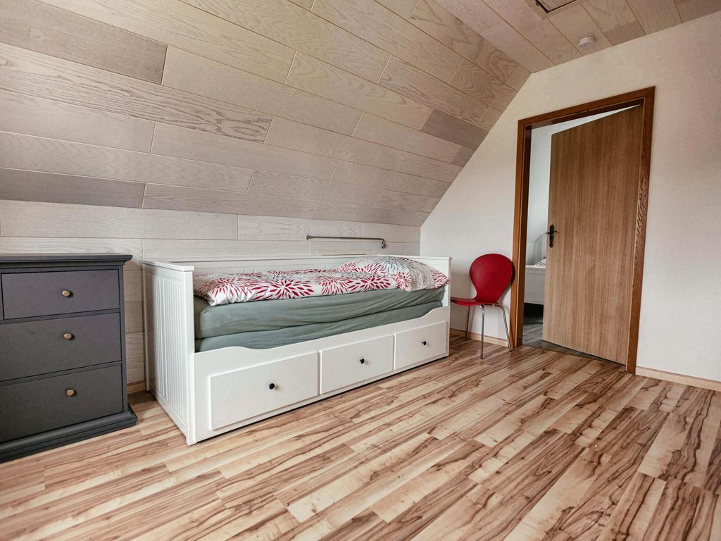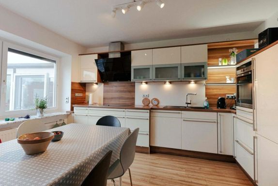 Das 105 qm große Ferienhaus hat 4 Schlafzimmer, eine große Küche, 2 Bäder und ein Wohnzimmer. Es erstreckt sich über das Erdgeschoss und den 1. Stock. Handtücher und Bettwäsche kann für 16,- € vor Ort geliehen werden, muss jedoch bei der Buchung bekanntgegeben werden. In unserer großen Wohnküche finden Sie neben der Standardausstattung diverse Extras, wie z.B.: Senseo Kaffeemaschine, Geschirrspüler, Toaster, Wasserkocher, Geschirrhandtücher, Mixer, Kinderhochstuhl und was natürlich nicht fehlen darf: ein ostfriesisches Teegeschirr. Im Wohnzimmer befindet sich der Fernseher und ein gemütliches Sofa. Eine kleine Spielesammlung und Bücher sind auch vorhanden. Insgesamt gibt es 4 Schlafzimmer. Das Schlafzimmer im EG hat ein Doppelbett (2,00 m x 1,80 m), sowie einem großen Schrank. Im OG sind 2 Schlafzimmer mit einem Einzelbett und einem Schrank, sowie ein Zimmer mit Schlafsofa und eigenem Bad. Dies Zimmer kann je nach Belegung als 3. Schlafzimmer oder als Aufenthaltsraum genutzt werden. Ein Kinderreisebett ist bei Bedarf vorhanden. Sowohl im EG als auch im OG gibt es ein Badezimmer mit Toilette, Dusche bzw. Badewanne. Von der Waschküche kommen Sie direkt in den Garten. In dieser ist der Tiefkühlschrank, die Waschmaschine und der Trockner. In unserem Haus ist das Rauchen und die Mitnahme von Tieren nicht erlaubt.