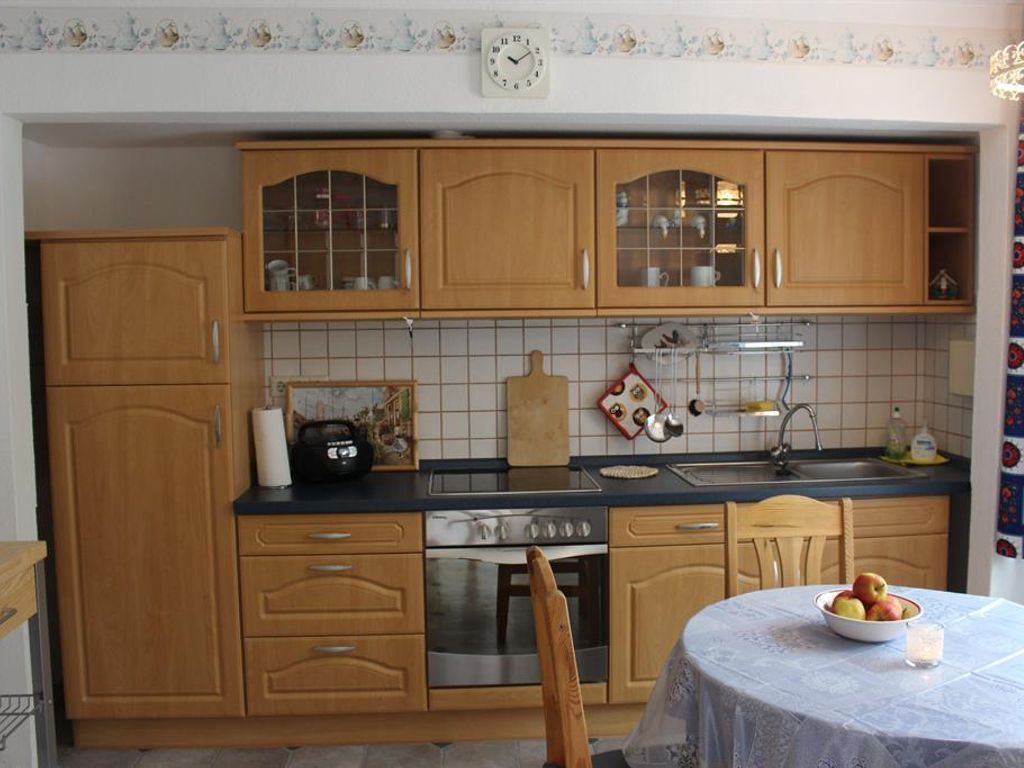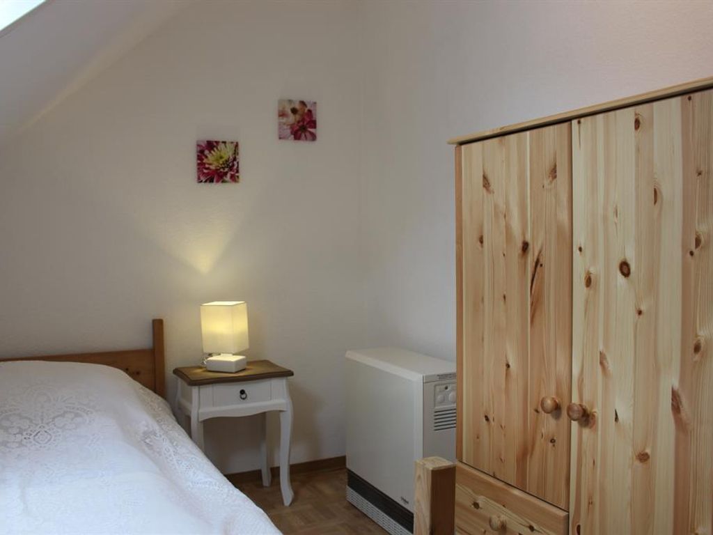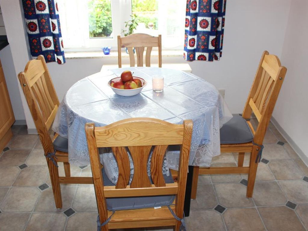 Das Ferienhaus verfügt über ein großes Schlafzimmer mit einem Doppelbett, sowie ein kleines Schlafzimmer mit einem Einzelbett die sich im 1. OG befinden. Bei Ihrer Ankunft sind die Betten bezogen. Ein Wohnzimmer mit Schlafsofa und TV. Eine Küche mit komplett ausgestatter Küchenzeile, Mikrowelle, Kaffemaschine, Wasserkocher usw. Geschirrhandtücher vorhanden. Ein Tageslichtbad mit Badewanne und Duschvorrichtung. Fön und pro Person 1 Duschtuch und ein Handtuch sind vorhanden. Als zusätzliche Leistung kann ein Handtuchpaket dazugebucht werden. Separates WC. Eine überdachte Terrasse im Aussenbereich mit Grillmöglichkeit. Ein Grill ist vorhanden. Parken ist in unmittelbarer Nähe möglich. Das Ferienhaus eignet sich für max. 3 Personen und hat 70 qm Wohnfläche.