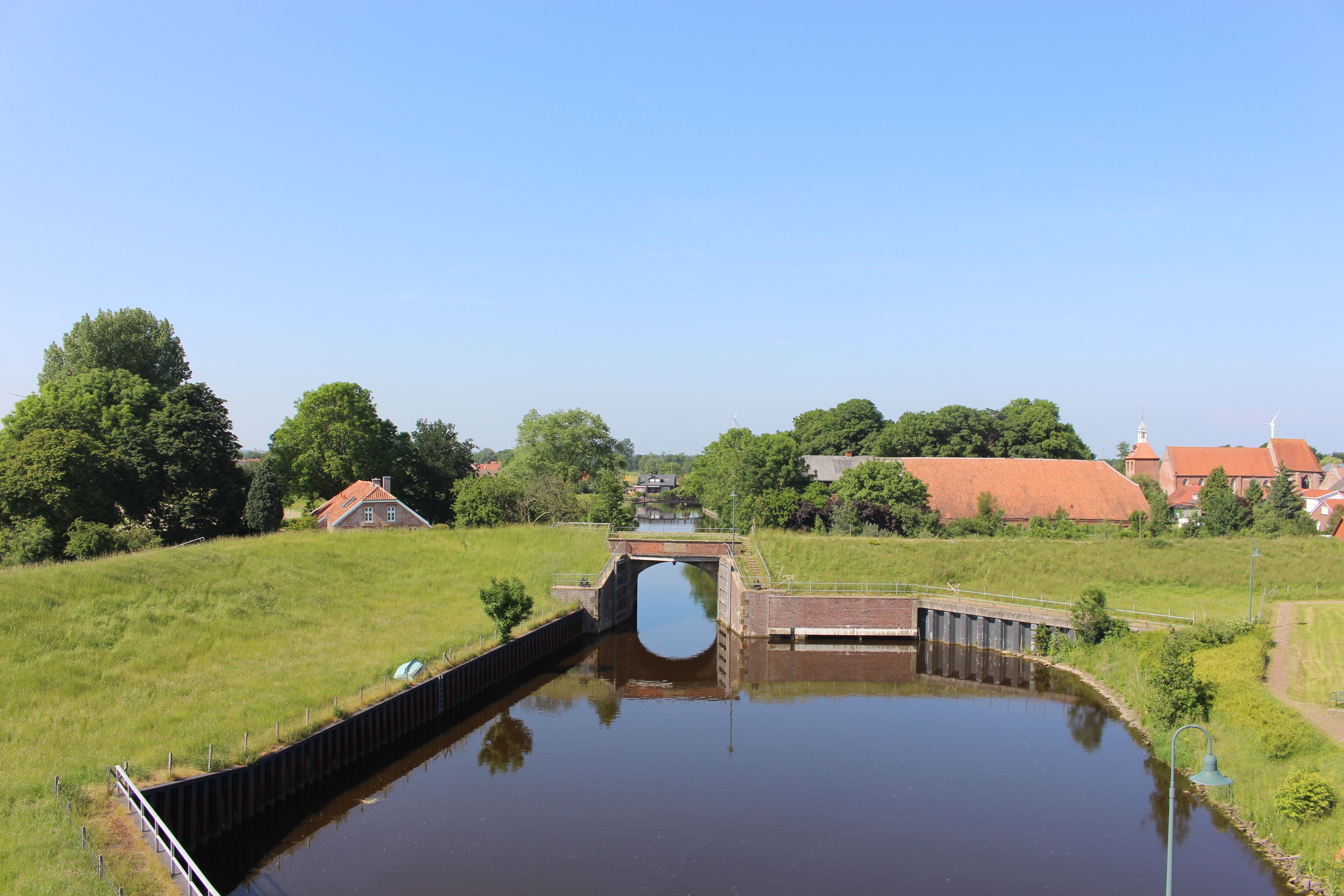 Das Haus befindet sich im alten Dorfkern im Emder Vorort Petkum. Zum Emsdeich und zum Fähranleger Petkum/Ditzum sind es zu Fuß nur ca. 5 Minuten. Das Emssperrwerk ist in Sichtweite vom Fähranleger. Eine Bushaltestelle ist in wenigen Gehminuten entfernt. Es gibt eine stündliche Busverbindung zur Emder Innenstadt mit der Linie 1 oder zwischendurch auch mit der Linie 621. Durch Petkum verläuft der Nordseeküsten Radweg.