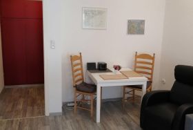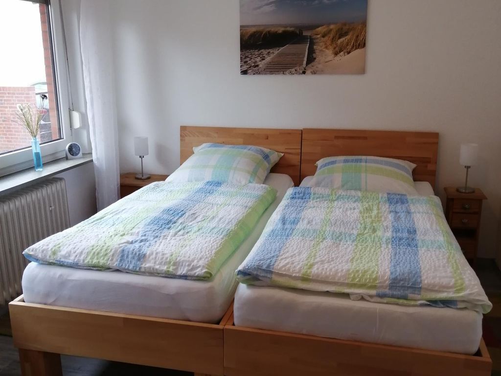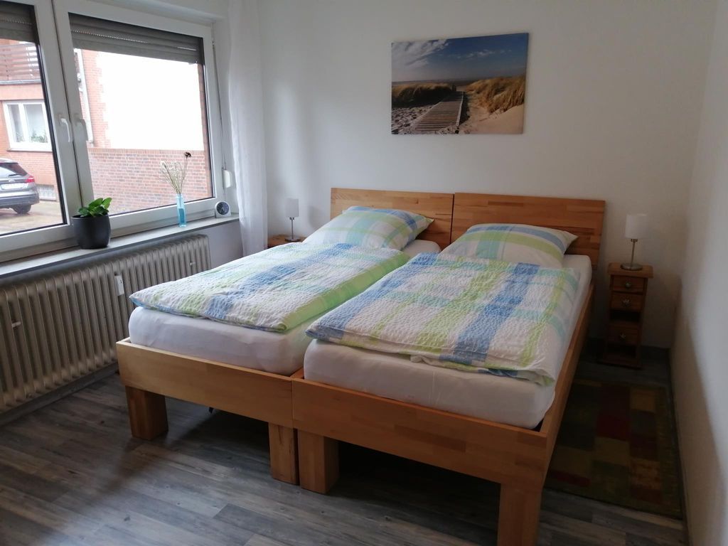 Die Wohnung ist ca. 43m² groß und befindet sich in der Hochparterre, sie ist unterteilt in: 1 Wohnzimmer mit Essgelegenheit, 1 Schlafzimmer mit 2 Einzelbetten (Können zu einem Doppelbett verbunden werden), eine kleine Küche mit einer Einbauküche und Essgelegenheit für 2-max. 3 Personen, 1 kleines Duschbad mit WC und Zwangsbelüftung und 2 kleine Flure, einer mit einem Einbauschrank für alle notwendigen Haushaltsutensilien wie z.B. Staubsauger, Eimer Wischmob usw. Die Ferienwohnung befindet sich in einem ruhigen 5 Parteien Haus. Parkplätze finden Sie in der näheren Umgebung. Im Schlafzimmer besteht die Möglichkeit ein Reisebett mit Matraze aufzustellen, welches separat gebucht werden kann. Alle Zimmer haben Aussenrollos und der Blick geht auf einen kleinen geplastertern Hof, bzw. von der Küche aus auf eine kleine Nebenstraße. Tischwäsche, Küchentücher, Handtücher und Bettwäsche sind incl.