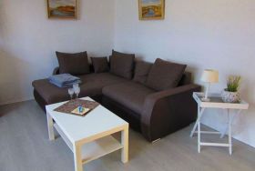 Die ca 60 qm Wohnung verfügt über ein Schlafzimmer mit zwei Einzelbetten, ein Wohnzimmer, eine komplett ausgestattete Küchenzeile sowie ein Tageslichtbad mit ebenerdiger Dusche. Die Ferienwohnung eignet sich für 2 Erwachsene Personen. Für mitreisende Kinder, können wir 1 Zustell- und 1 Kinderreisebett, sowie einen Kinderhochstuhl zur Verfügung stellen. Desweiteren bieten wir Ihnen Mikrowelle, Wasch-und Spülmaschine, Toaster, Friteuse, Sat-TV, DVD-Player, W-Lan und einen Fön. Handtücher und Bettwäsche sind incl.