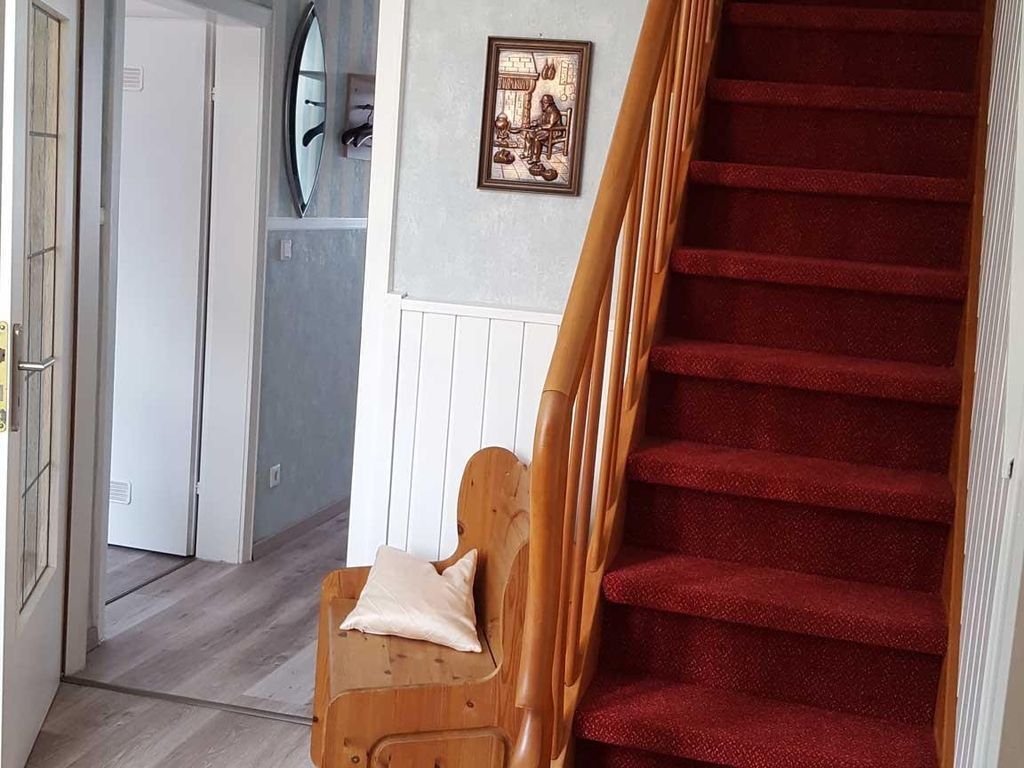 Das ca. 100 qm große Ferienhaus ist für bis zu 6 Personen ausgestattet. Im Erdgeschoss befindet sich ein Schlafzimmer, mit einem Doppelbett, die auch als Einzelbetten gestellt werden können. Es gibt eine gemütliche Wohnküche, ein Wohnzimmer, ein geräumiges Bad mit Dusche/WC und ein Gäste-WC. Im Obergeschoss sind noch zwei weitere Schlafräume. Das Haus ist im Erdgeschoss mit einem neuen Venylfussboden und im Obergeschoss mit neuem Teppichboden ausgelegt. Um in die Dusche zu gelangen, muss ein ca. 10 cm hoher Absatz überwunden werden.