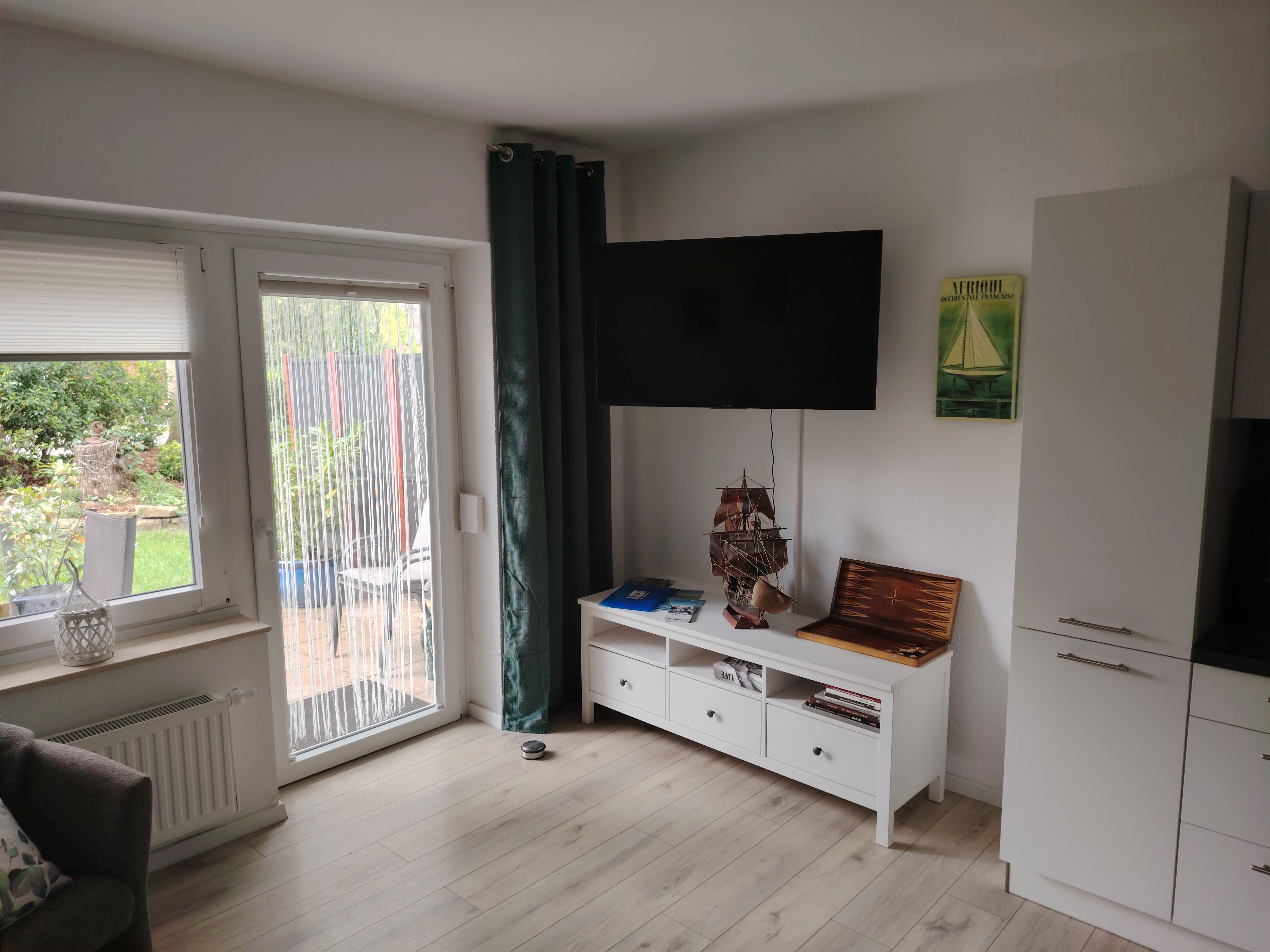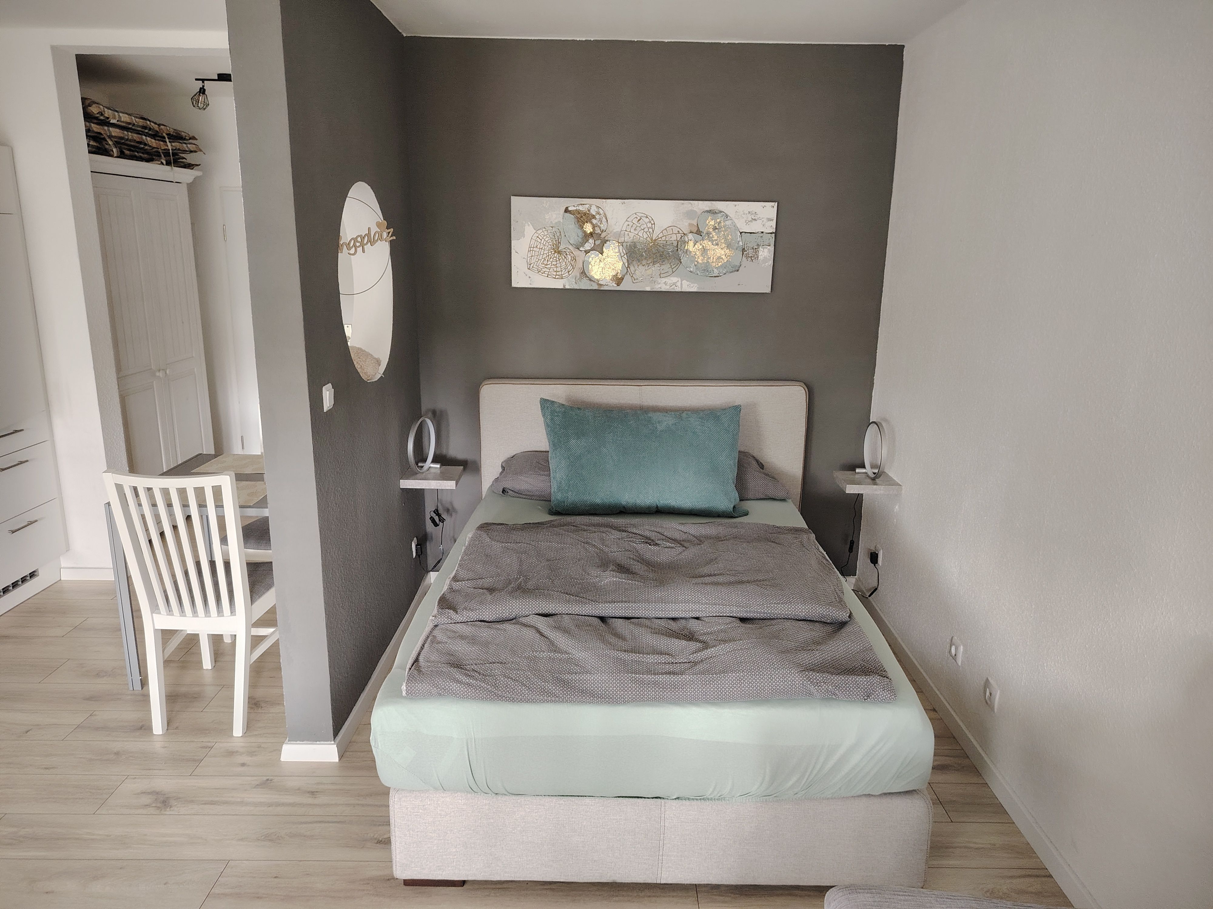 Frisch renoviertes Ferienapartment im bevorzugten Stadtteil Emden-Wolthusen. Die 32 qm große Einraumwohnung liegt im EG eines ruhigen und gepflegten Terrassenhaus. Eine idyllische Terrasse lädt zum Ausspannen ein. Parkplatz direkt vor der Haustür. Fahrräder können in der anliegenden Garage abgestellt werden. Langzeitvermietung zu Sonderkonditionen. Der Vermieter bietet Bootstouren zu Sonderkonditionen an.