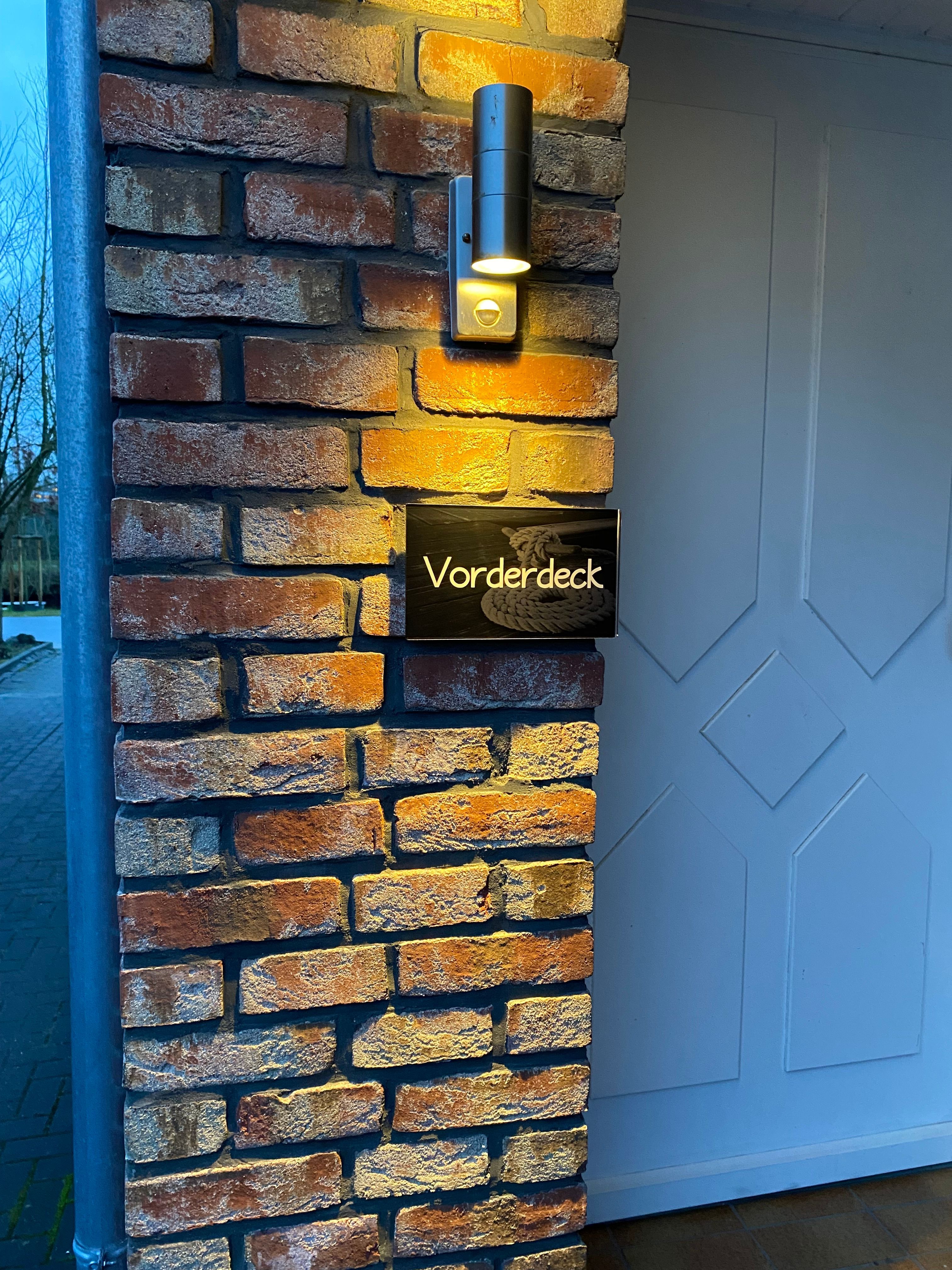 Herzlich willkommen im Ferienhaus Vorderdeck. Das moderne ca. 90 qm große Ferienhaus bietet im Erdgeschoss einen geräumigen Wohn- Schlafraum mit TV. Ebenfalls befindet sich eine voll ausgestatte Küche mit Sitzecke im Erdgeschoss. Über eine Treppe gelangen Sie ins Obergeschoss wo sich noch ein Schlafzimmer mit Doppelbett, sowie ein Kleiderschrank befindet. Im ganzen Haus haben Sie WLAN. Im Badezimmer finden Sie eine Dusche und WC. Außerhalb finden Sie einladenende Terrasse mit Blick auf den Kanal.