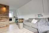 Der Urlaub beginnt bereits bei der Ankunft – in der frisch und modern im Beach-Style eingerichteten Dachgeschosswohnung kommt richtiges Strandfeeling auf. Und auch bei Schietwetter entfaltet sich im lichtdurchfluteten Dachstudio mit ca. 40 m² Grundfläche ein Gefühl von Gemütlichkeit. Die Wohnung verfügt über einen offenen Wohn-/Essbereich mit separierter Küchenzeile sowie ein geräumiges Schlafzimmer und ein stylisches Duschbad mit viel Komfort. Durch die Fenster schweift der Blick über die Dächer Heiligenhafens hinweg bis zum Binnensee. In der modern ausgestatteten Küche mit Herd, Backofen, Spülmaschine und Kühlschrank lassen sich schnell und unkompliziert kleine Speisen zubereiten. Selbstverständlich ist auch für Gläser, Geschirr und Besteck gesorgt. Das gemütliche Sofa lädt zum Verweilen ein. Und im hochwertigen Boxspringbett eines renommierten Herstellers kommen sie bequem durch die Nacht. Nur wenige Gehminuten sind es entlang des Binnensees zum Kommunalhafen und zur Innenstadt. Nichtraucher / Keine Haustiere. Für max. 2 Erwachsene.