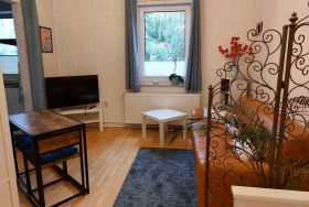 Ferienwohnung mit Wohn/Schlafraum, Küche mit Geschirrspüler und Mikrowelle, Dusche und WC. Es gibt ein zweites WC zur Nutzung.