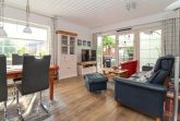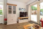 Der Wohn- Essbereich ist sehr gemütlich und ansprechend eingerichtet, Stressless-Sitzmöbel und Vollholzmöbel, sowie mit allem notwendigen Zubehör ausgestattet. Großer Fernseher (SAT), Musikanlage/CD und WLAN sind selbstverständlich. Die integrierte Küche verfügt über alle notwendigen Elektrogeräte und natürlich auch über einen Geschirrspüler. Vom großzügigen hellen Wohnbereich haben Sie direkten Zugang auf die Terrasse (mit Markise) und den, die ganze Wohnung umgebenden Gartenbereich mit bequemen Gartenmöbeln sowie einem Strandkorb.