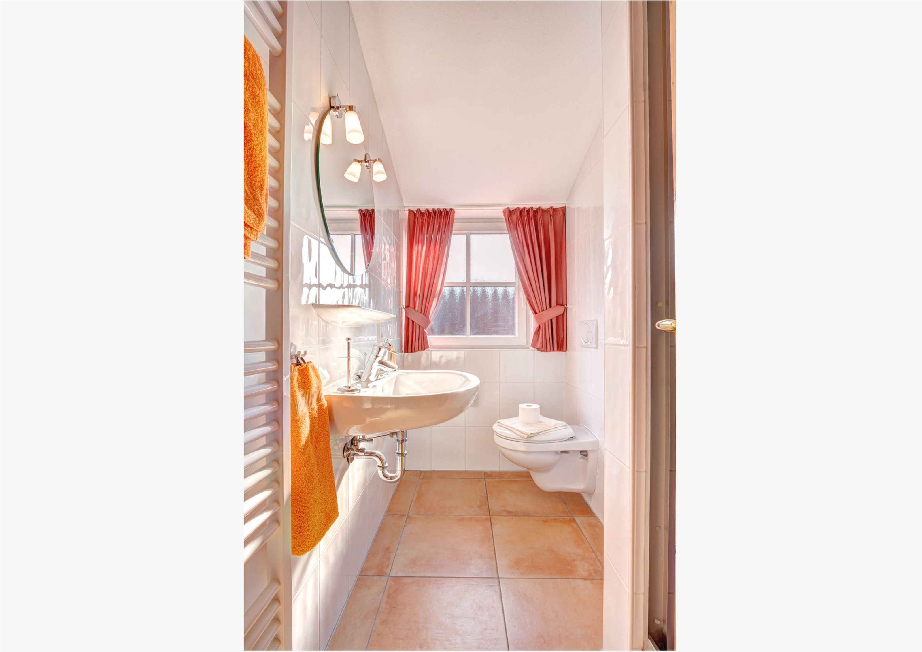 Zwischen den beiden Zimmern liegt das zweite Badezimmer mit Dusche, WC und Waschbecken.