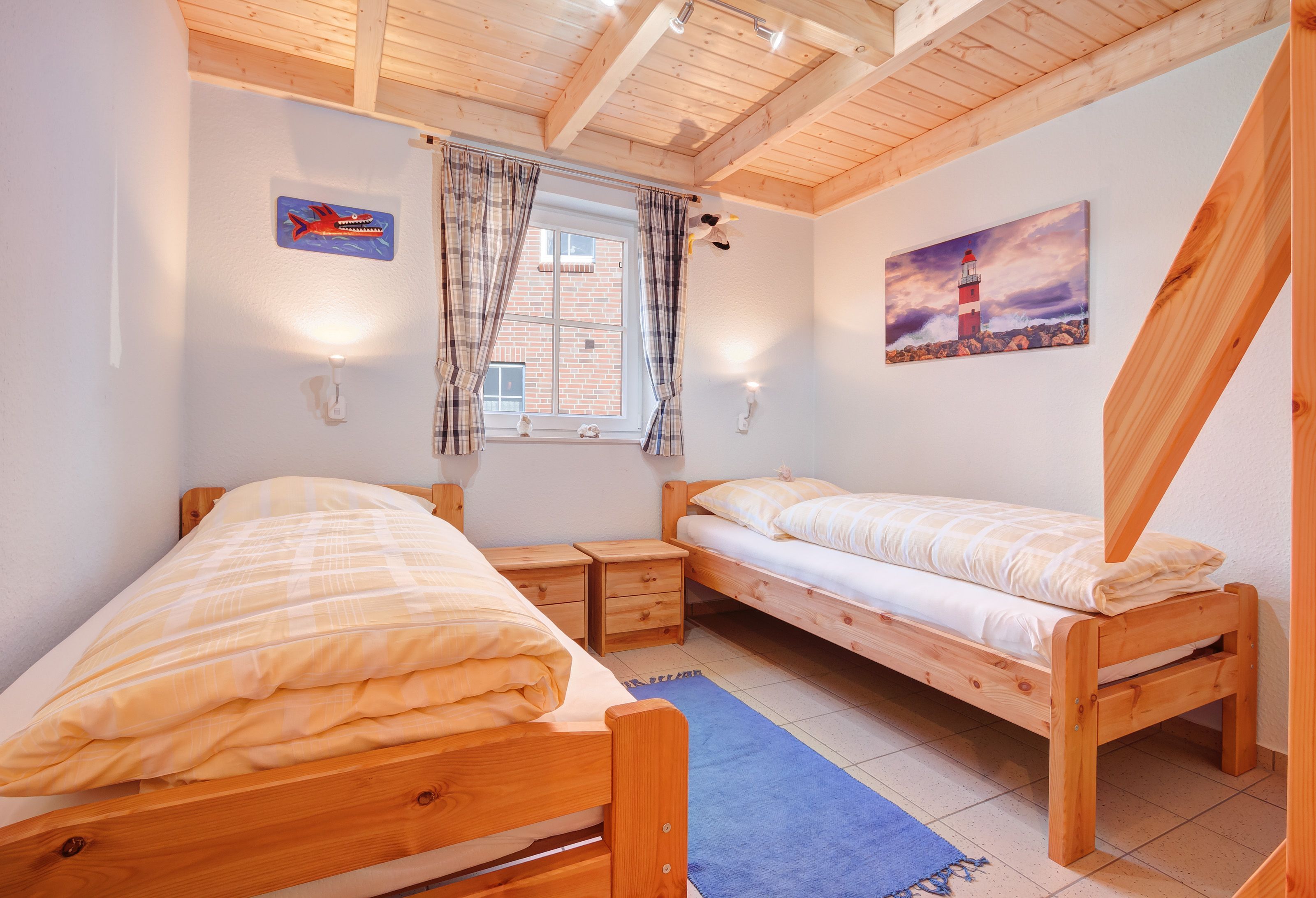 Auf den ersten Blick wirkt der Klipper mit 90 m² zwar großzügig, aber nicht sonderlich spektakulär. Max. 6 Personen (zzgl. einem Kleinkind) finden hier eine gemütlichen Wohnraum mit Kamin, eine sorgsam ausgestattete Küche mit Essbereich sowie 1 Duschbad nebst zusätzlichem separaten WC und 3 Schlafräume (einmal mit Doppelbett, zweimal mit zwei Einzelbetten). Ein zweiter Blick aber könnte Diskussionen um die Zimmeraufteilung auslösen: Von einem der drei Schlafzimmer führt eine Holztreppe zur 2. Wohnebene - ein eigenes kleines Reich für kleine und große Kinder!