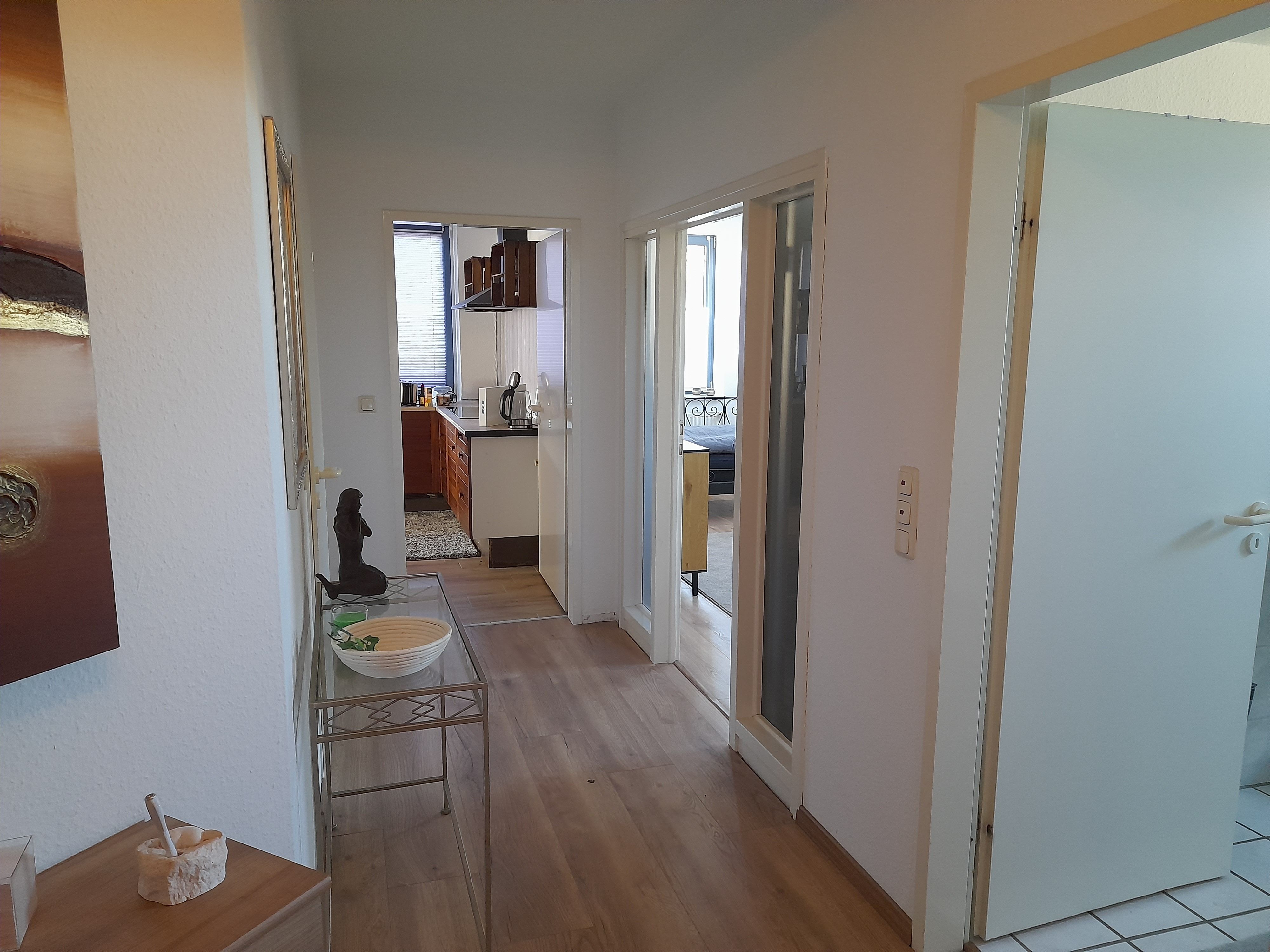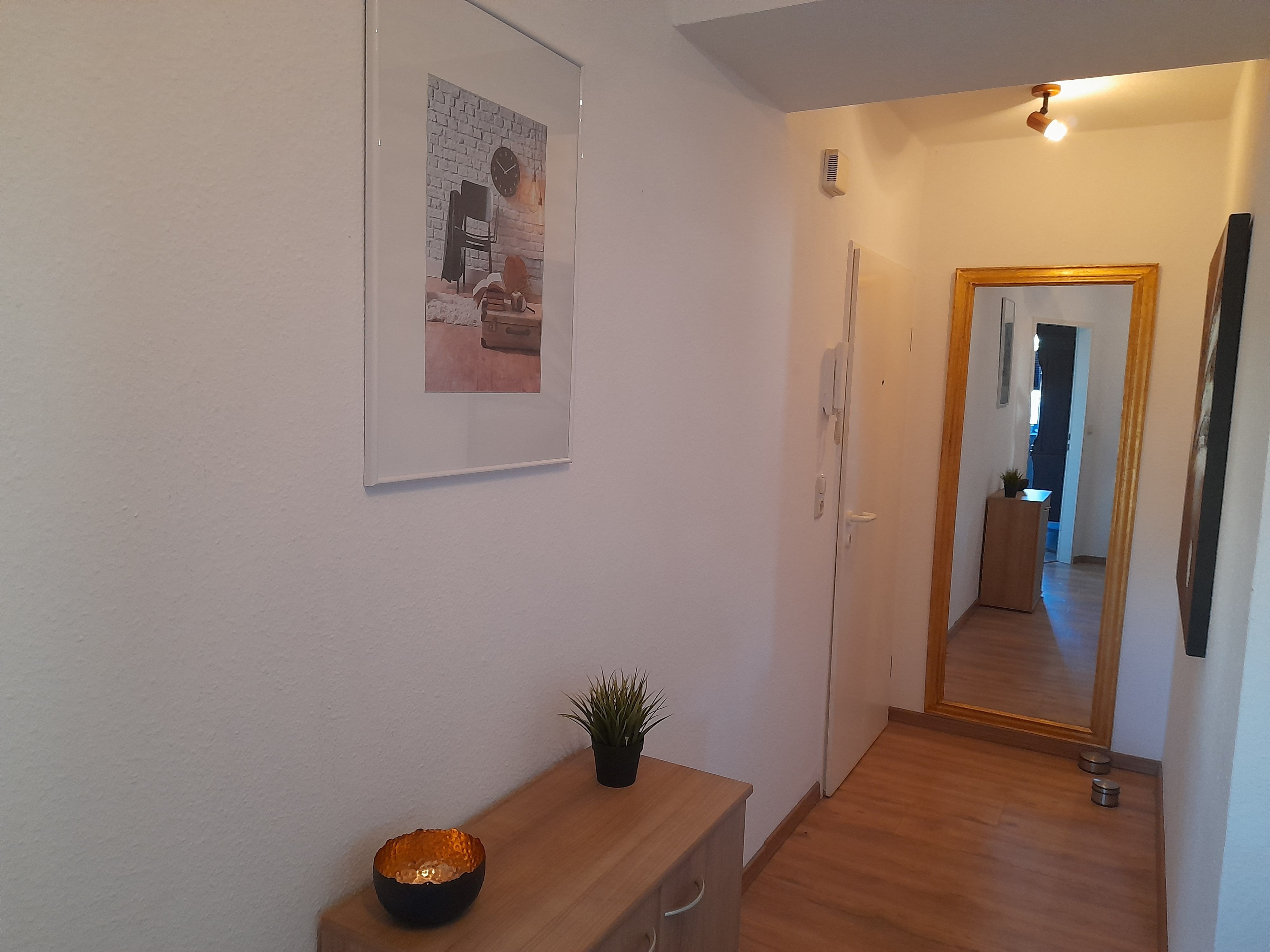 Dieser Flur führt wiederum zurück zum Eingangsbereich an der Wohnungstür, so dass Sie die Wohnung durch zwei separate Eingänge - auch abschließbar - erreichen.