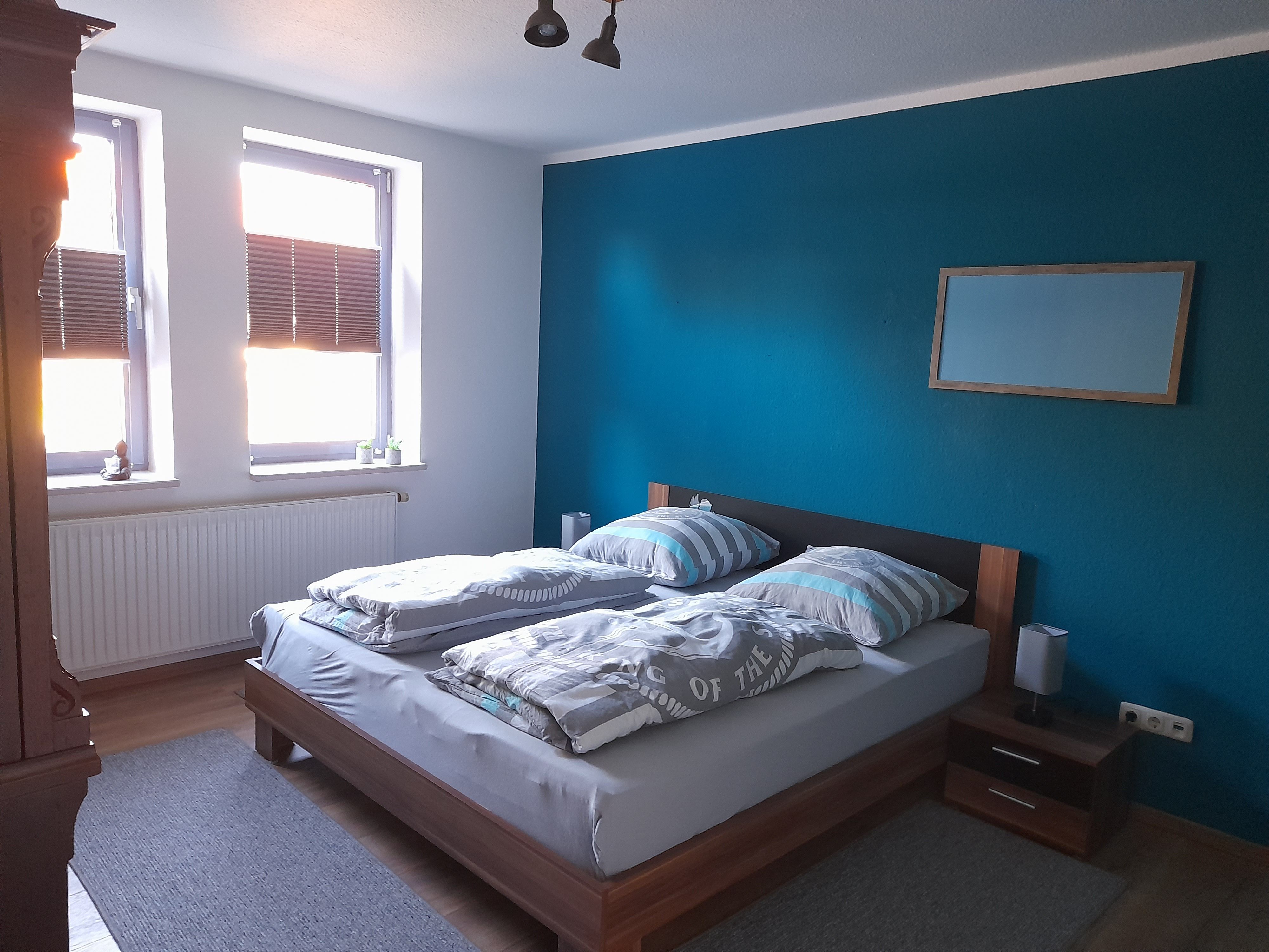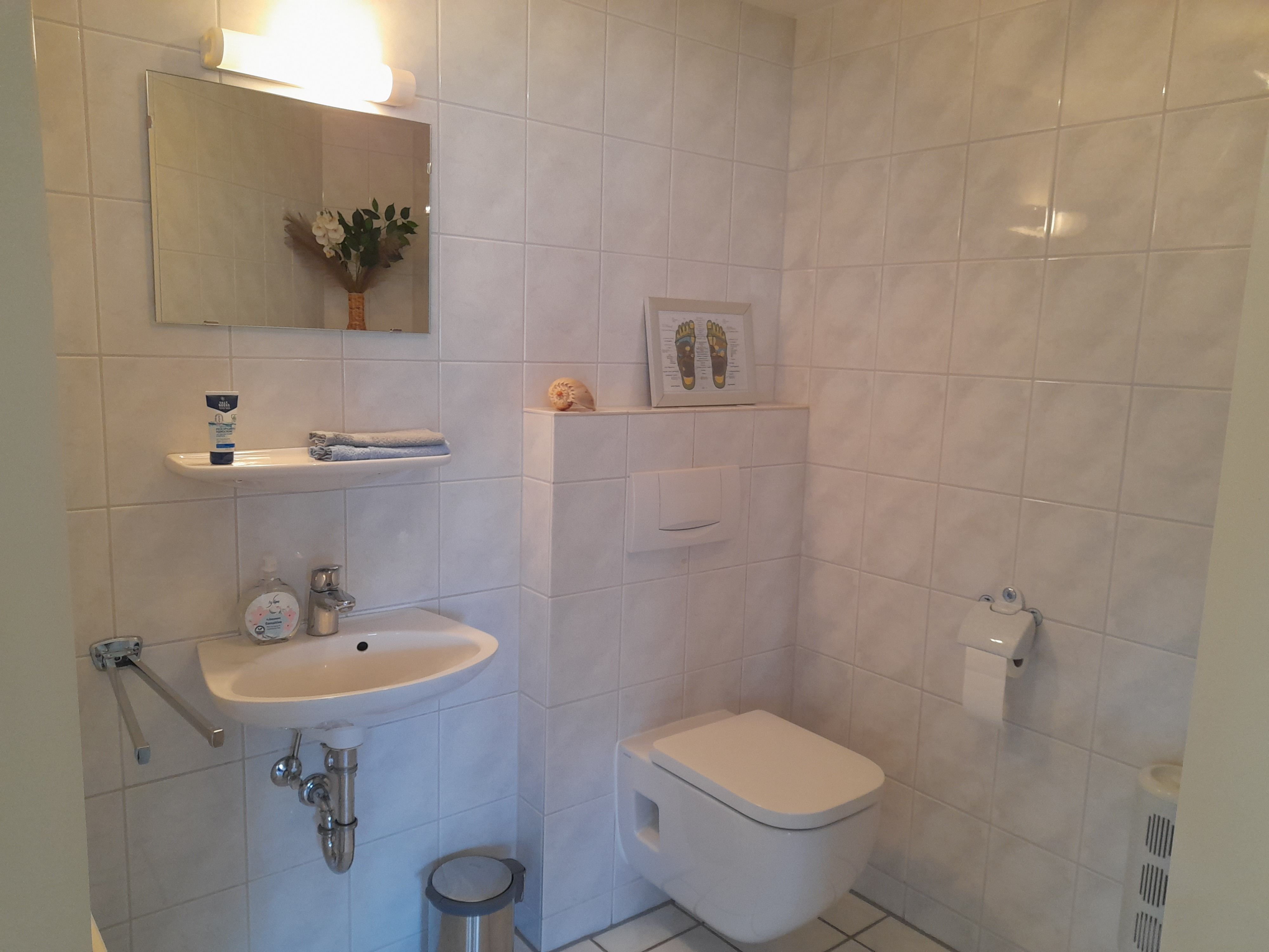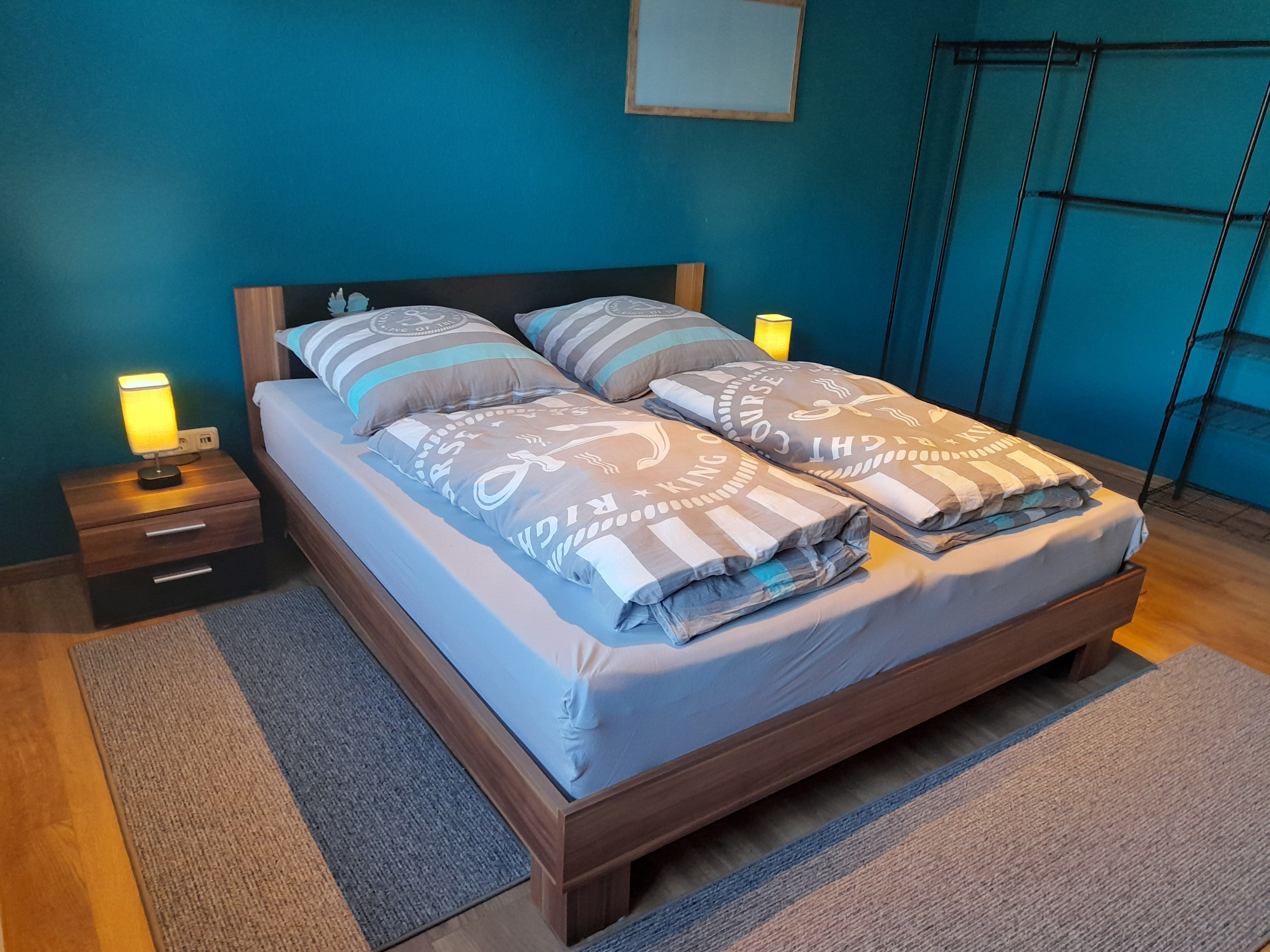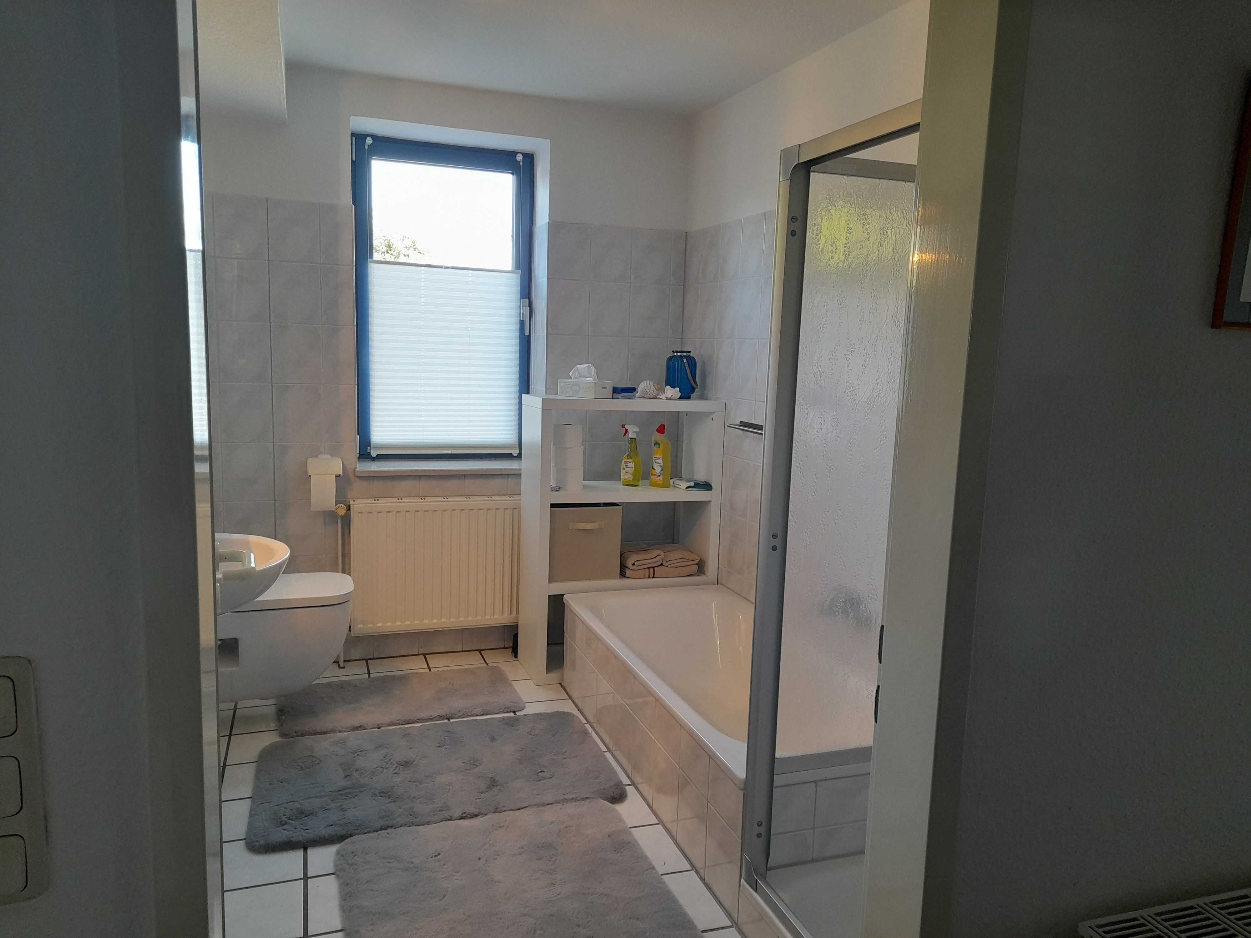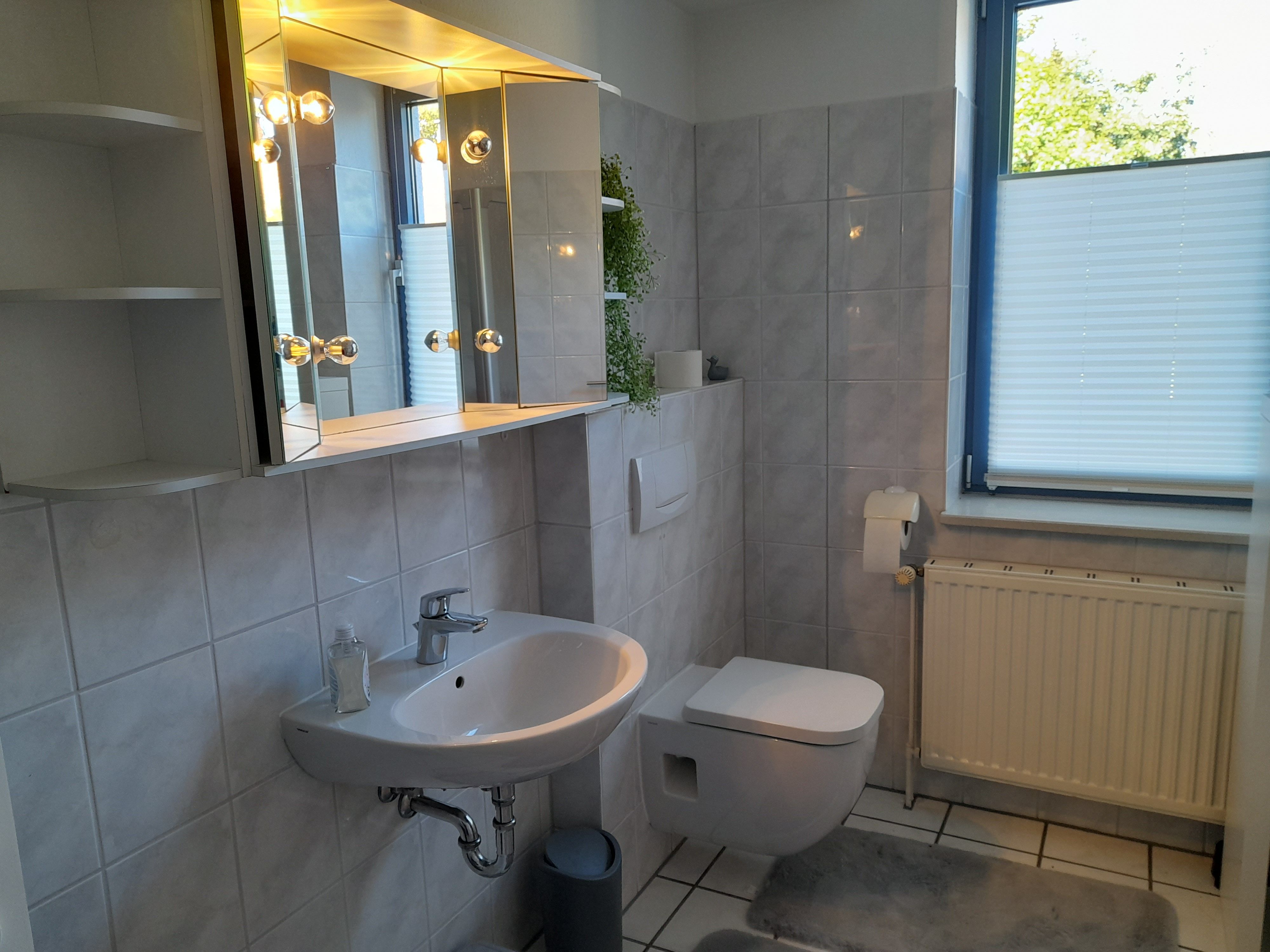 Ab Küche gelangen Sie in den Flur, von dem aus die beiden Schlafräume - einer mit Doppelbett und einer mit einem Einzelbett und einer Schlafcouch - und das helle freundliche Fenster-Bad - mit Dusche und Badewanne - abzweigen. Ein weiterer Fernseher steht im Einzelbettschlafraum bereit.