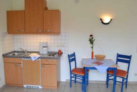 • 28 m², 1 separates Schlafzimmer mit 1,40 m breitem Doppelbett, Wohnraum mit Kochnische, Ess- und Sitzecke
