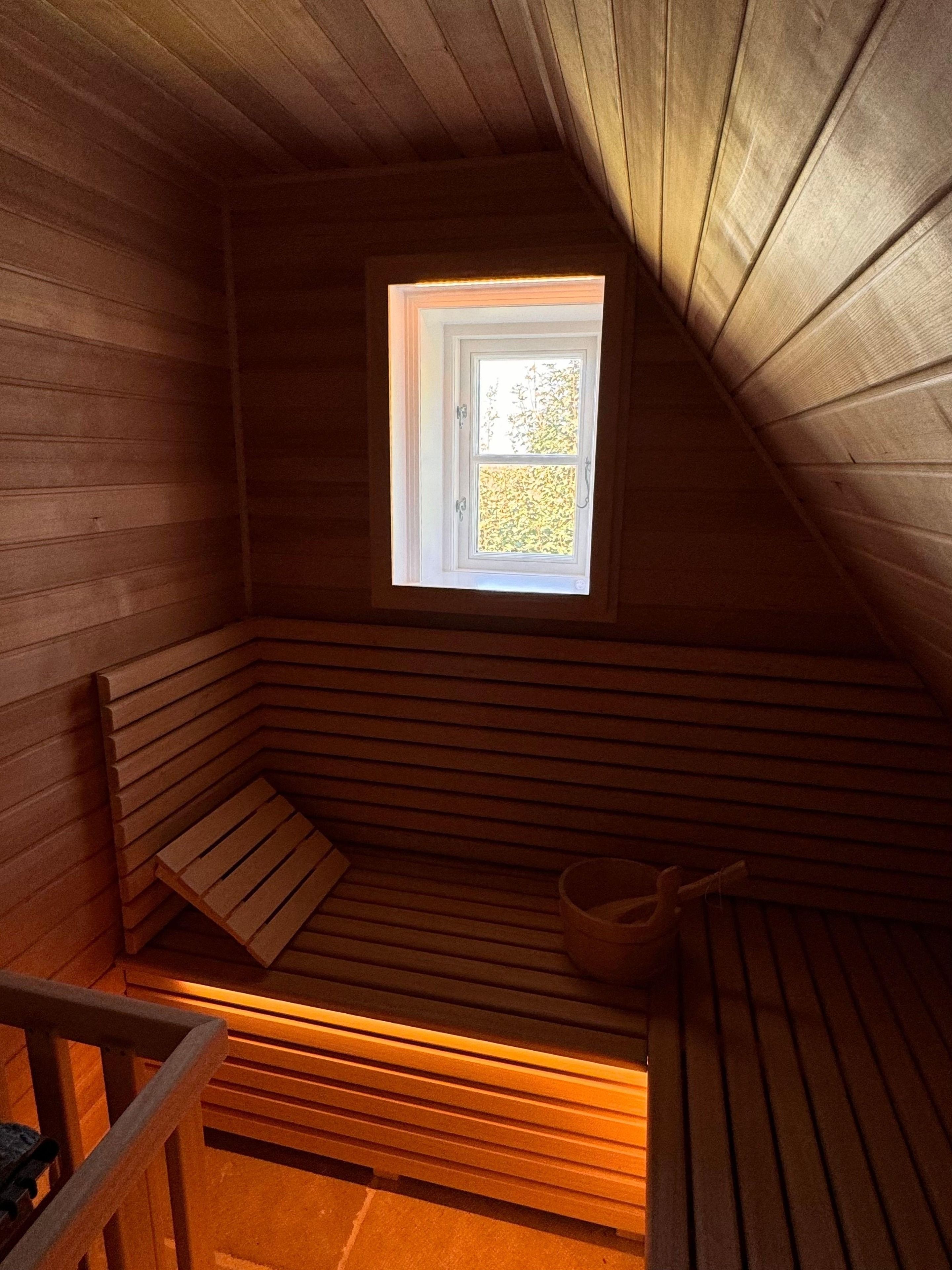 Die hauseigene Sauna, Fußbodenheizung sowie geschmackvolle Tischlereinbauten bieten zusätzlichen Komfort.