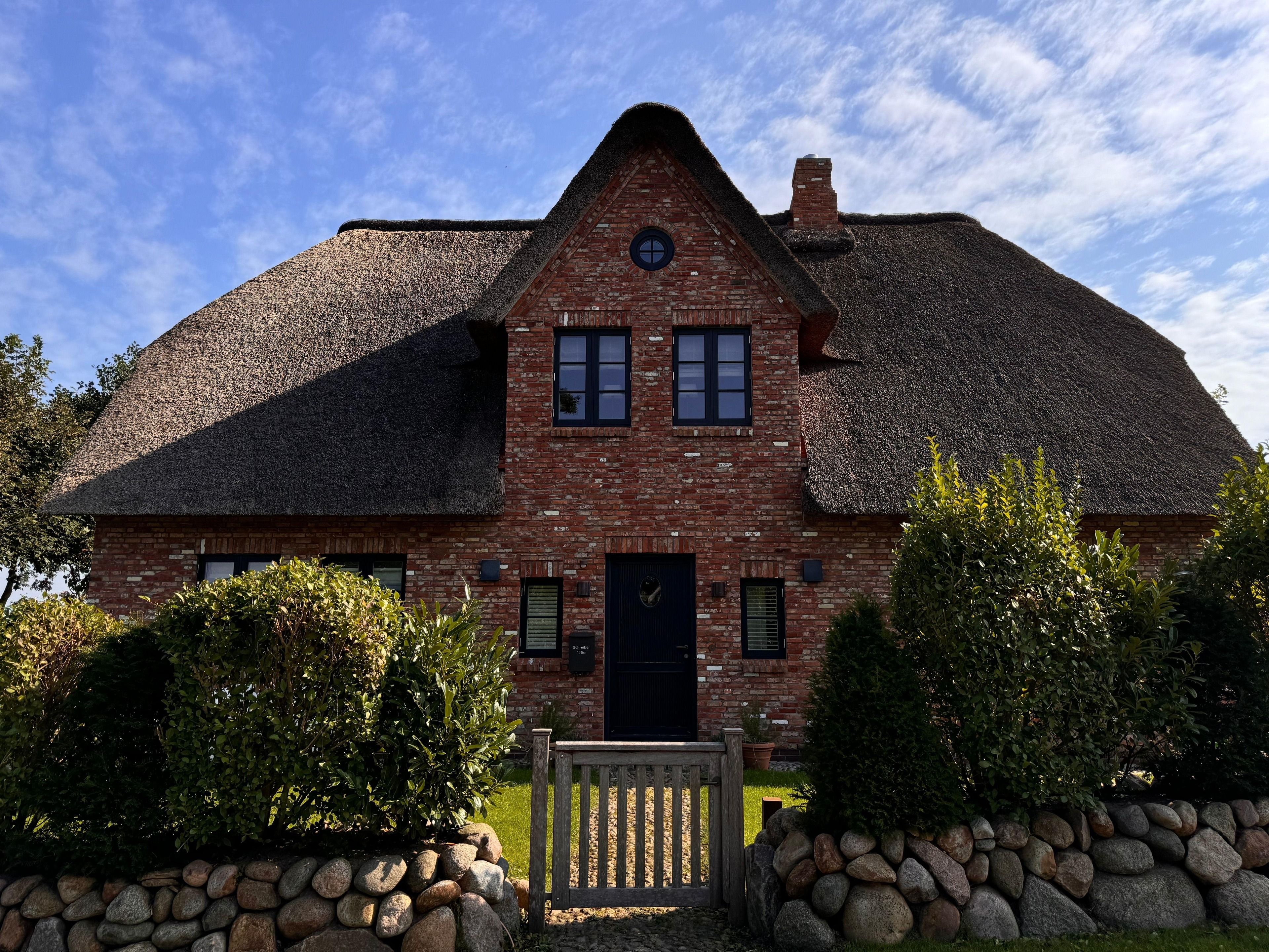 Das schöne Friesenhaus liegt im Künstlerdorf Oldsum. Die attraktive Lage an der Oldsumer Marsch sowie die kurze Entfernung zum historischen Ortskern mit seinen Cafés, kleinem Supermarkt und Läden, ist der perfekte Ausgangspunkt.