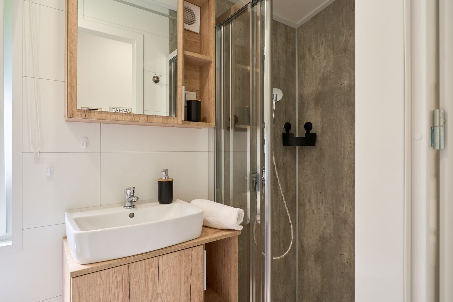 Im Inneren erwartet Sie ein helles, stilvoll eingerichtetes Zuhause auf Zeit: Zwei separate Schlafzimmer mit TV, ein modernes Badezimmer sowie eine offene, voll ausgestattete Wohnküche laden zum Wohlfühlen ein. Ob gemeinsames Frühstück, entspanntes Kochen oder gemütliche Netflix-Abende – hier finden Sie Raum für all das, was Urlaub ausmacht.