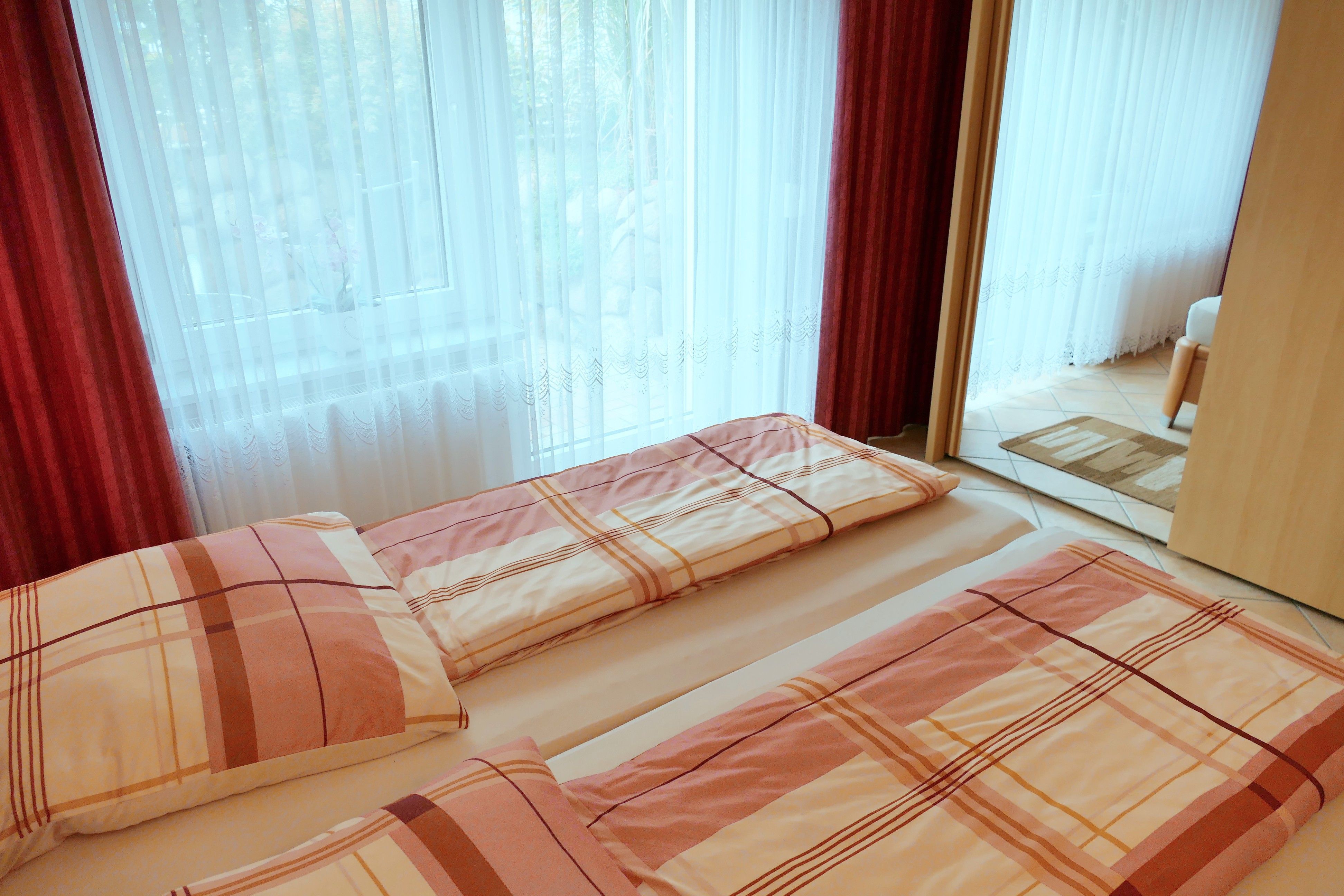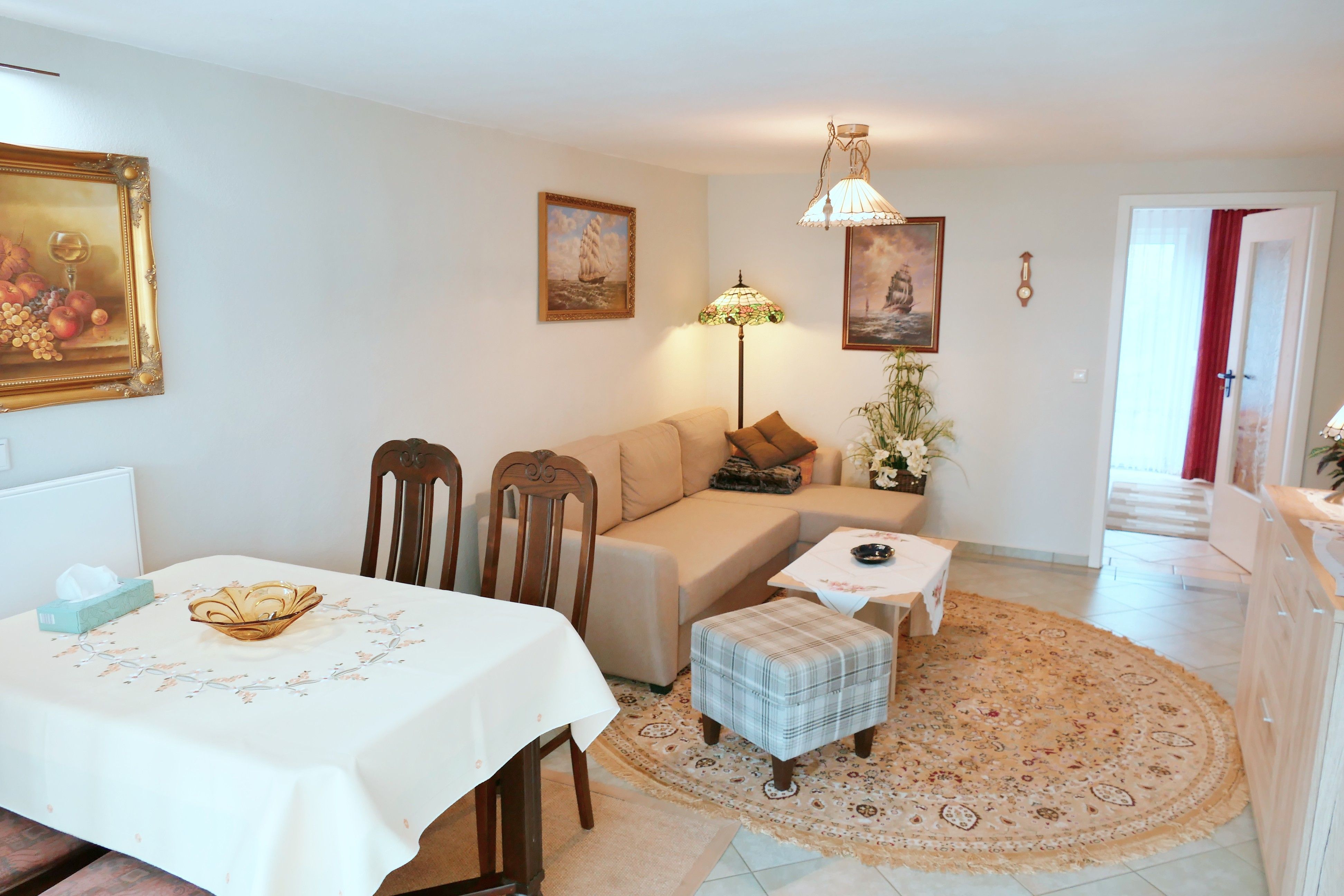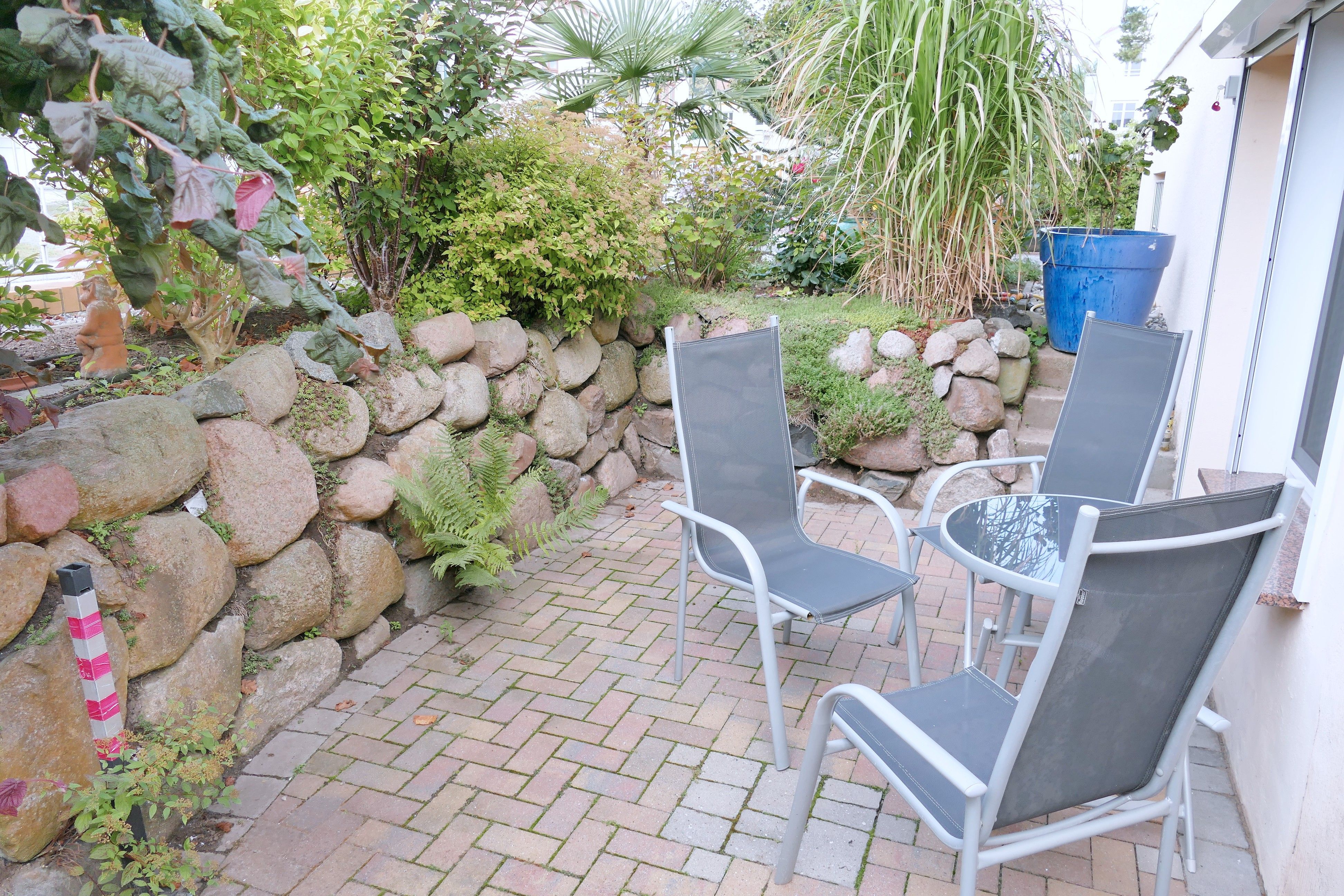 Hell und freundlich - diese schöne 2-Raum-Ferienwohnung bietet mit 47 qm ein schönes Zuhause auf Zeit für bis zu 2 Personen. Die Wohnung befindet sich im Erdgeschoss im Eigenheim des Vermieters und hat einen separaten Eingang. Der Wohnbereich verfügt über eine bequeme Couch, Flachbild-TV (radiofähig) und einen Esstisch mit 4 Stühlen, der ausreichend Platz bietet. Das Schlafzimmer hat ein bequemes Doppelbett sowie einen großen Kleiderschrank mit genügend Stauraum. Die kleine Küche mit Ceranherd, Backofen, Spülmaschine, Kühl-/Gefrierkombination, Geschirr, Kaffeemaschine, Wasserkocher und Toaster bietet perfekte Voraussetzungen für entspannte Frühstücke oder das Abendessen zu zweit. Das Badezimmer mit Fenster ist praktisch eingerichtet: mit Dusche (niedriger Duscheinstieg), WC und Ablagefläche. Zwei möblierte Terrassen laden dazu ein bei schönem Wetter den ersten Kaffee am Morgen zu genießen oder den erlebnisreichen Tag bei einem Glas Wein ausklingen zu lassen.