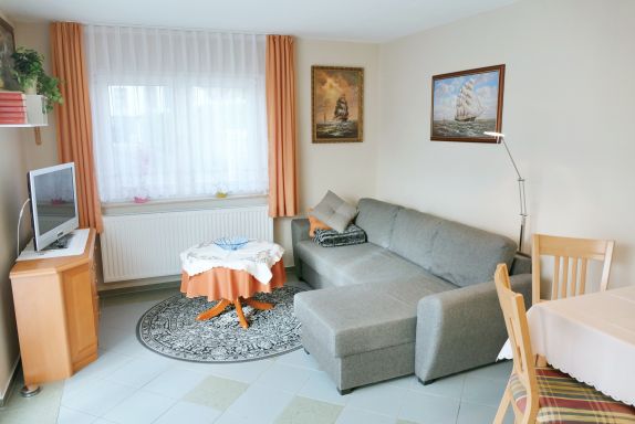 Diese kleine und feine Nichtraucher-Ferienwohnung bietet mit seinen 38 qm einen idealen Rückzugsort für bis zu 2 Personen. Die Wohnung liegt im Erdgeschoss in einem Ferienhaus auf dem Grundstück des Vermieters. Im hellen Wohnbereich gibt es neben einer bequemen Couch, Flachbild-TV (radiofähig) auch einen Esstisch mit 2 Stühlen. Die offene Küchenzeile mit Ceranherd, Backofen, Geschirrspüler, Mikrowelle, Kaffeemaschine und Wasserkocher lässt keine Wünsche offen und bietet ideale Voraussetzungen für entspannte Frühstücke oder das Abendessen zu zweit. Das Schlafzimmer hat ein bequemes Doppelbett sowie einen großen Kleiderschrank mit genügend Stauraum. Das Badezimmer ist mit einer ebenerdigen Dusche sowie einem WC ausgestattet. Die Terrasse ist der perfekte Ort, um morgens bei einem Kaffee zu frühstücken oder abends den Tag gemütlich ausklingen zu lassen. Bei einem Glas Wein lassen sich entspannte Stunden wunderbar genießen.