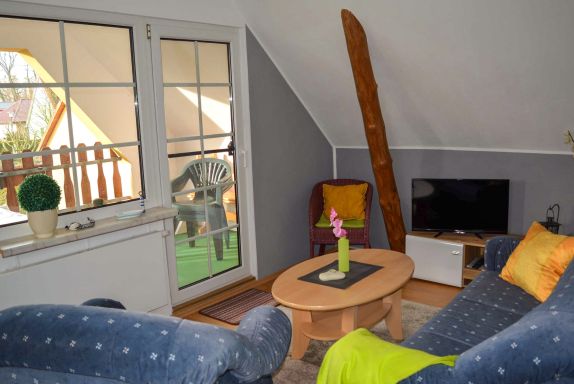 Die Ferienwohnung auf dem Lande in Saal OT Kückenshagen bietet dir einen entspannten Rückzugsort inmitten einer ruhigen, ländlichen Umgebung. Auf 50 m², verteilt auf das Dachgeschoss eines separaten Gebäudes, erreichst du die Wohnung über einen eigenen Eingang und eine steile Treppe. Die Unterkunft ist ideal für bis zu 5 Personen und überzeugt durch einen offenen Wohnbereich, in dem Wohnzimmer, Essbereich und Küchenzeile harmonisch miteinander verbunden sind perfekt, um in entspannter Atmosphäre deine Mahlzeiten zuzubereiten. Zwei Schlafzimmer bieten flexible Schlafmöglichkeiten, während das Bad mit Dusche den Innenbereich komplettiert. Vom Balkon und der Terrasse aus genießt du den Blick in den gemeinschaftlich genutzten Garten, in dem ein Grill für gemütliche Abende bereitsteht. Ein Parkplatz sowie eine Fahrradunterstellmöglichkeit stehen dir direkt vor Ort zur Verfügung.