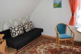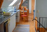 Die Ferienwohnung auf dem Lande in Kückenshagen bei Saal bietet dir auf 50 m² im Dachgeschoss einen gemütlichen Rückzugsort für bis zu 5 Personen. Über einen separaten Eingang, den du über eine steile Treppe erreichst, gelangst du in die liebevoll eingerichtete Wohnung. Im offenen Wohnzimmer, das mit einem Sofa und TV ausgestattet ist, hast du direkten Zugang zum Balkon und zur angrenzenden offenen Küche, die mit einem Esstisch integriert ist. Die Küche lässt keine Wünsche offen sie ist ausgerüstet mit einem Mini-Backofen, Herd, Kühlschrank, Mikrowelle, Toaster, Kaffeemaschine und Wasserkocher, sodass du deine Mahlzeiten ganz nach deinem Geschmack zubereiten kannst. Die Unterkunft verfügt über zwei Schlafzimmer: Eines ist mit einem komfortablen Doppelbett (180x200) ausgestattet, während das zweite Zimmer ein ausziehbares Tandembett (2x 90x200) und ein Schlafsofa (80x200) bietet ideal, um flexibel zu entscheiden, ob ihr gemeinsam oder getrennt schlafen möchtet. Ein geräumiger Kleiderschrank sorgt dafür, dass all deine Sachen ihren Platz finden. Das Badezimmer verfügt über eine Dusche und ein WC. Zur Abrundung deines Aufenthalts lädt die Terrasse mit Sonnenschirm und gemütlichen Sitzmöglichkeiten dazu ein, den Tag im Freien ausklingen zu lassen und mit dem Grill kannst du auch gleich den perfekten BBQ-Abend genießen.