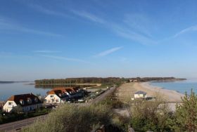 Ein Wanderweg führt direkt zum Salzhaff und zum Ostseestrand.