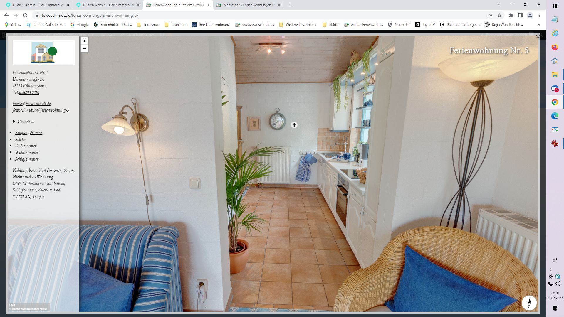 Die Wohnungen Nr. 5 und 6 sind in einem Ferienhaus im OG liegende Ferienwohnungen von ca. 55 qm Größe, bestehend ais Wohnzimmer mit Balkon, Schlafzimmer, Küche und Bad.