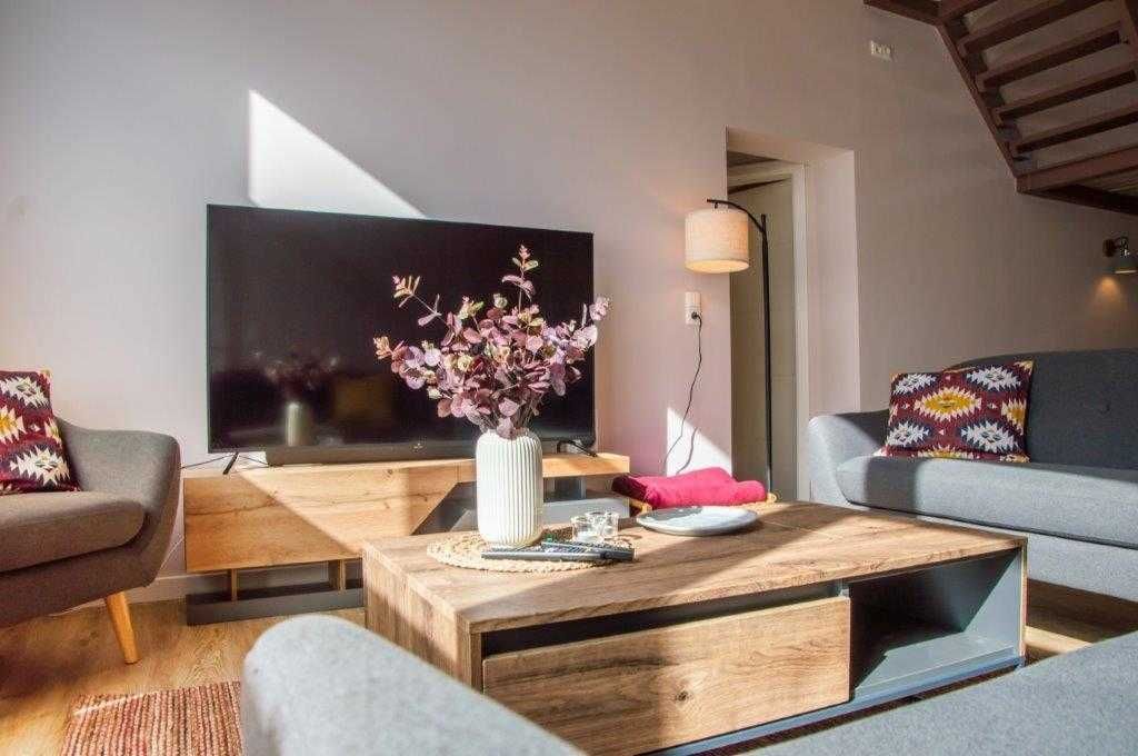 Die Wohnung in einer Größe von ca. 140 m2 über 3 Wohnebenen verfügt über 3 Schlafzimmer (2x EB 90 x 200 cm / 1x DB 180 x 200 cm plus Fernseher / 1x DB Extralarge 180 x 210 cm plus Fernseher) - 2 Bäder - voll ausgestattete Küche mit Terrassentür - 45 m2 Wohnzimmer mit einer Deckenhöhe von 4m mit Essbereich und Galerie - Goggle home vorhanden.