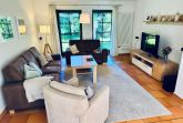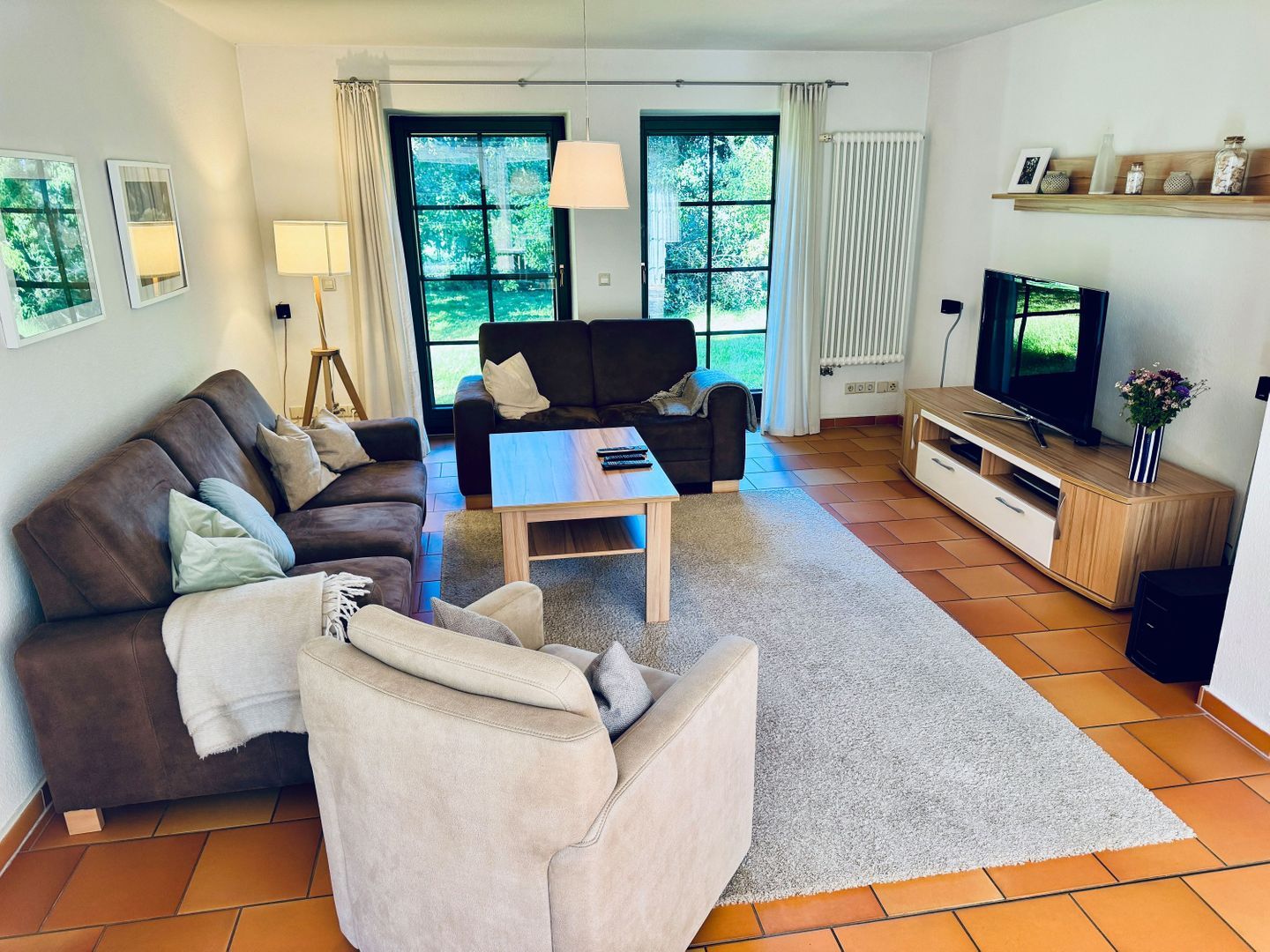 WOHNEN // Wohnraum mit Essbereich, bequemer Couchgarnitur, Kamin, Flachbild-TV, Zugang zur möblierten Terrasse ++