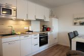 Die Einbauküche verfügt über ein Cerankochfeld mit Backofen sowie eine Mikrowelle und ist mit kompl. Geschirr ausgestattet.