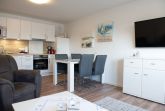 Wohn/Esszimmer mit Einbauküche, gemütlicher Garnitur sowie Esstisch und Stühle* Fernseher